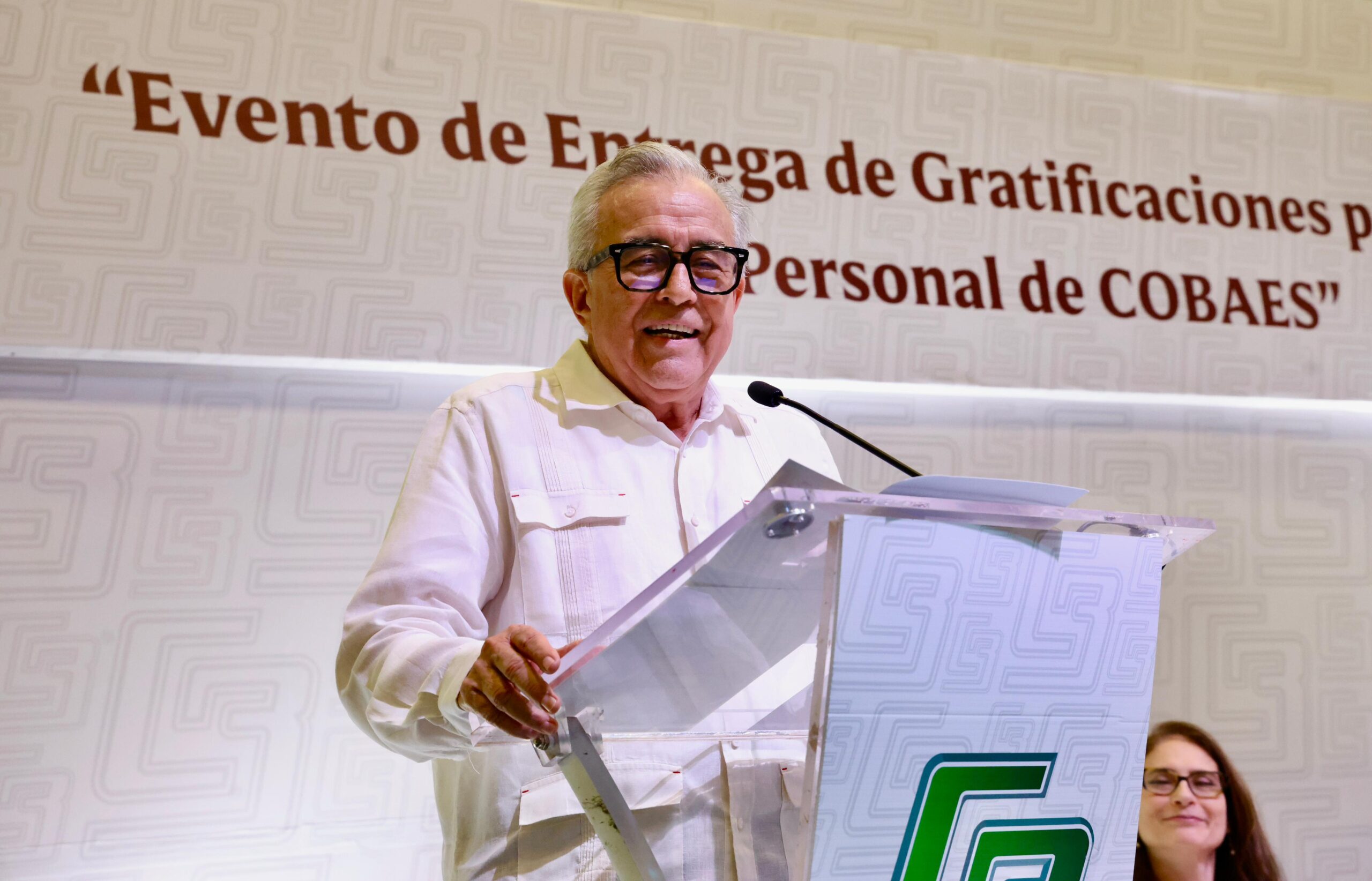 Acompañado del director general de COBAES Santiago Inzunza Cázarez y Ricardo Madrid Uriarte, secretario general del SNTE Sección 53, el mandatario estatal reconoció y agradeció la labor, dedicación y esfuerzo de todos los trabajadores y maestros a favor de la educación en el estado y el país necesita, contribuyendo a construir sociedades más humanas.