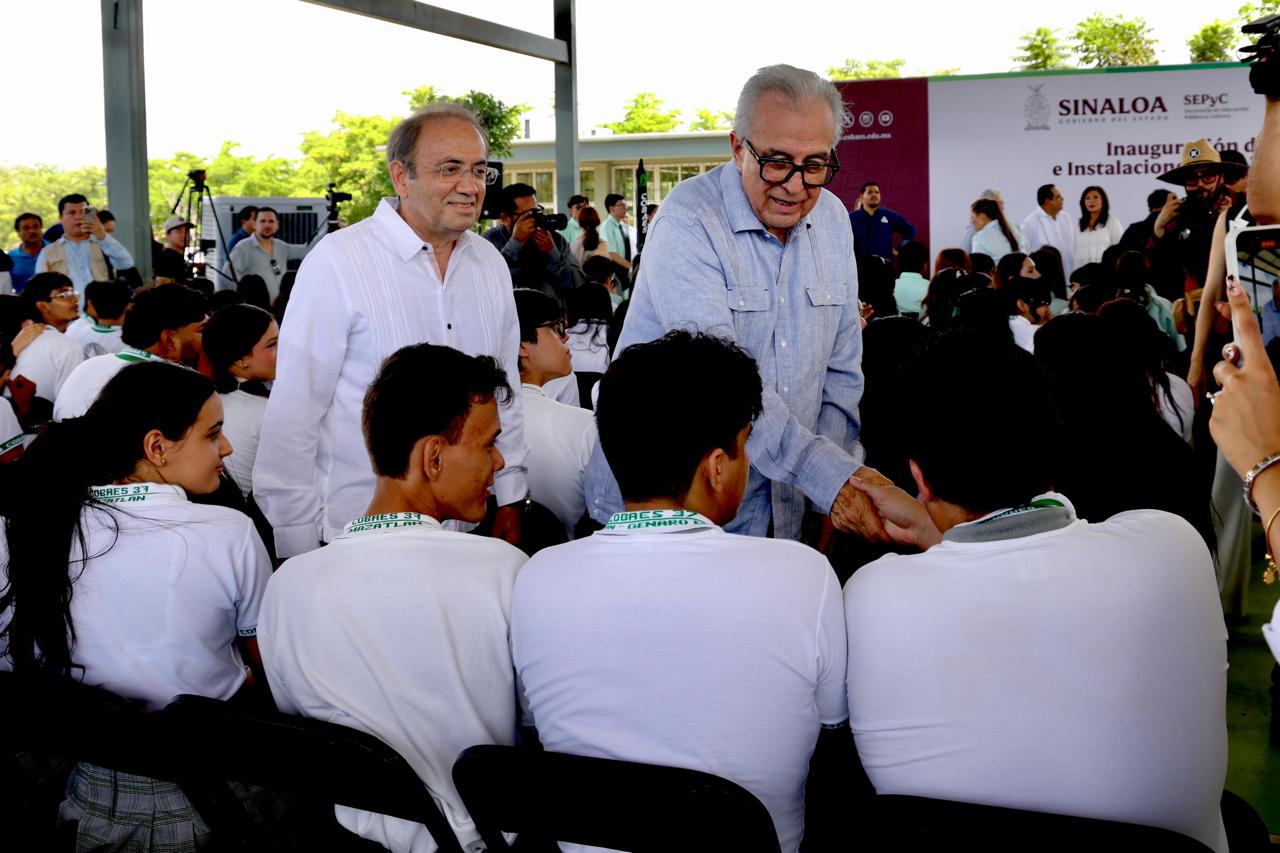 Acompañado de la alcaldesa Estrella Palacios y la secretaria de Educación estatal, Gloria Himelda Félix, durante su mensaje el gobernador Rocha, felicitó a los alumnos del plantel por sus nuevos espacios de enseñanza y socialización «El compromiso de mi gobierno de seguir apoyando a la juventud por la vía de la educación», precisó.