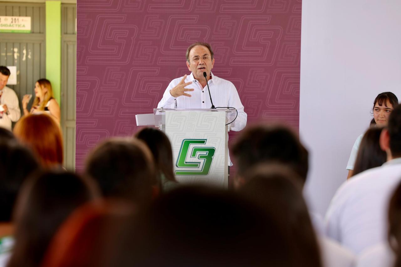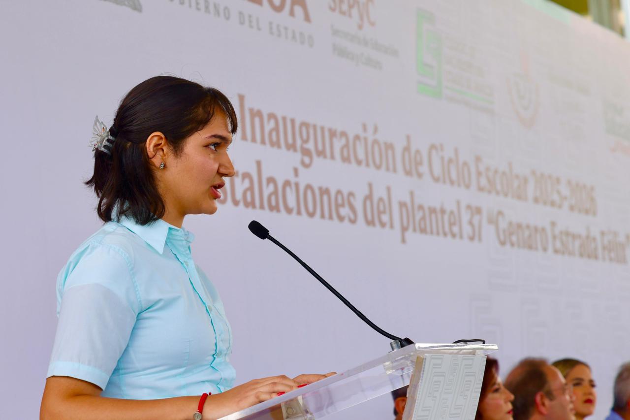 Particularmente, agradeció el apoyo de Gobierno del Estado por la rehabilitación del Plantel 37 “Genaro Estrada Félix”, en el cual se invirtieron más de 18 millones de pesos, que beneficia a 550 estudiantes de este sector de la ciudad, quienes podrán disfrutar de las nuevas instalaciones diseñadas para potenciar un aprendizaje accesible y adaptado a los desafíos de la educación actual.