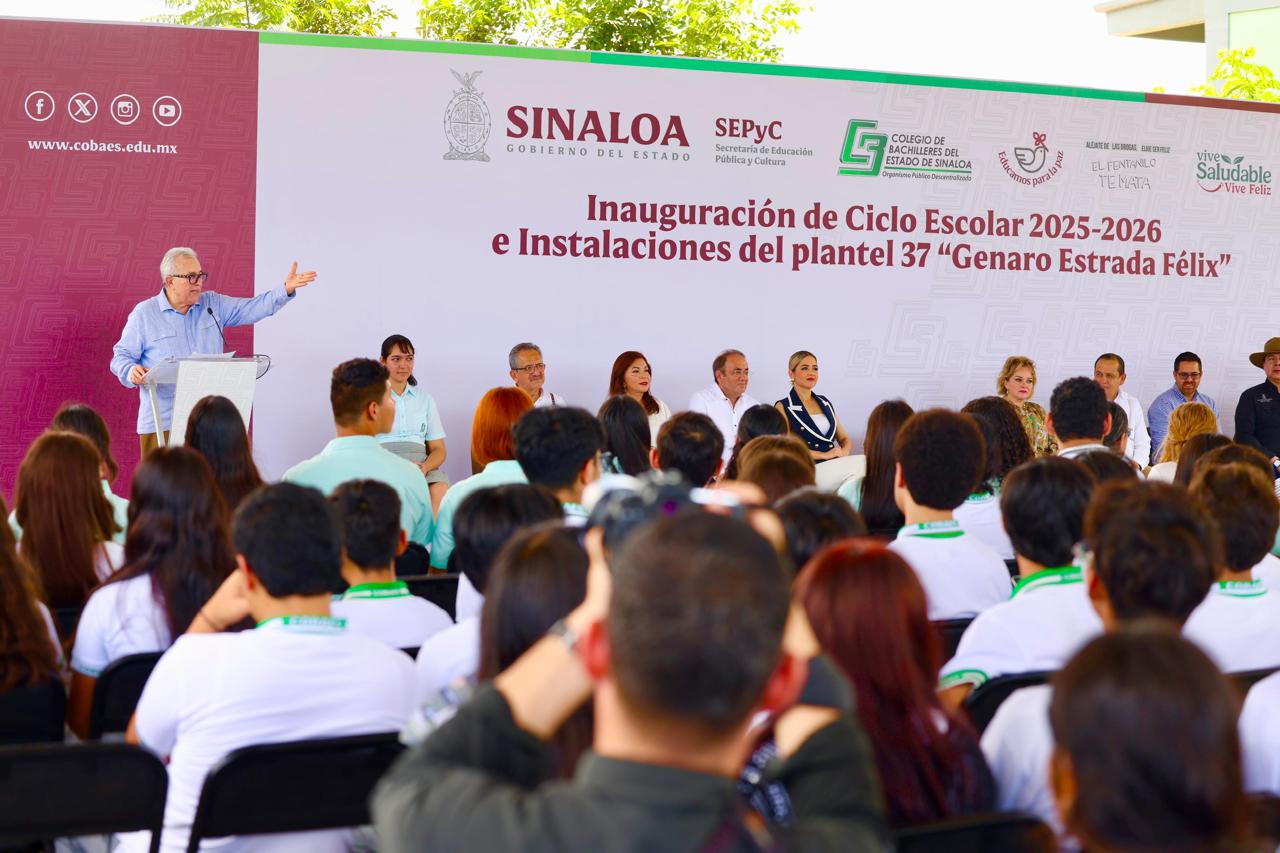 Por su parte, el director General de COBAES Santiago Inzunza Cázares, afirmó que, con 127 planteles en el estado y una matrícula de 32 mil alumnos y alumnas, COBAES es un referente en la educación media superior en Sinaloa, con más de cuatro décadas en la formación de bachilleres en ruta hacia la educación superior, que con entrega y dedicación están formando las generaciones del futuro.