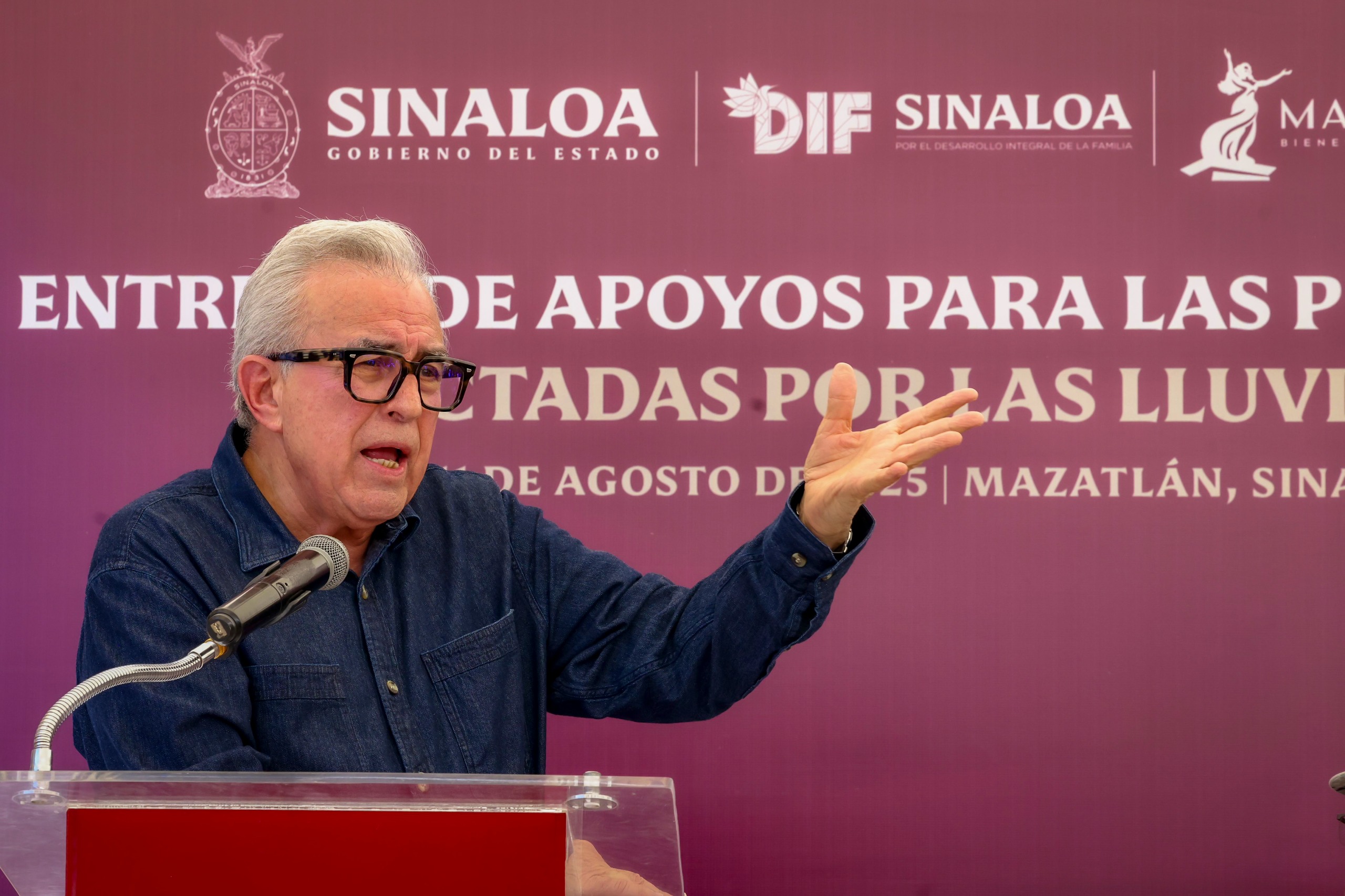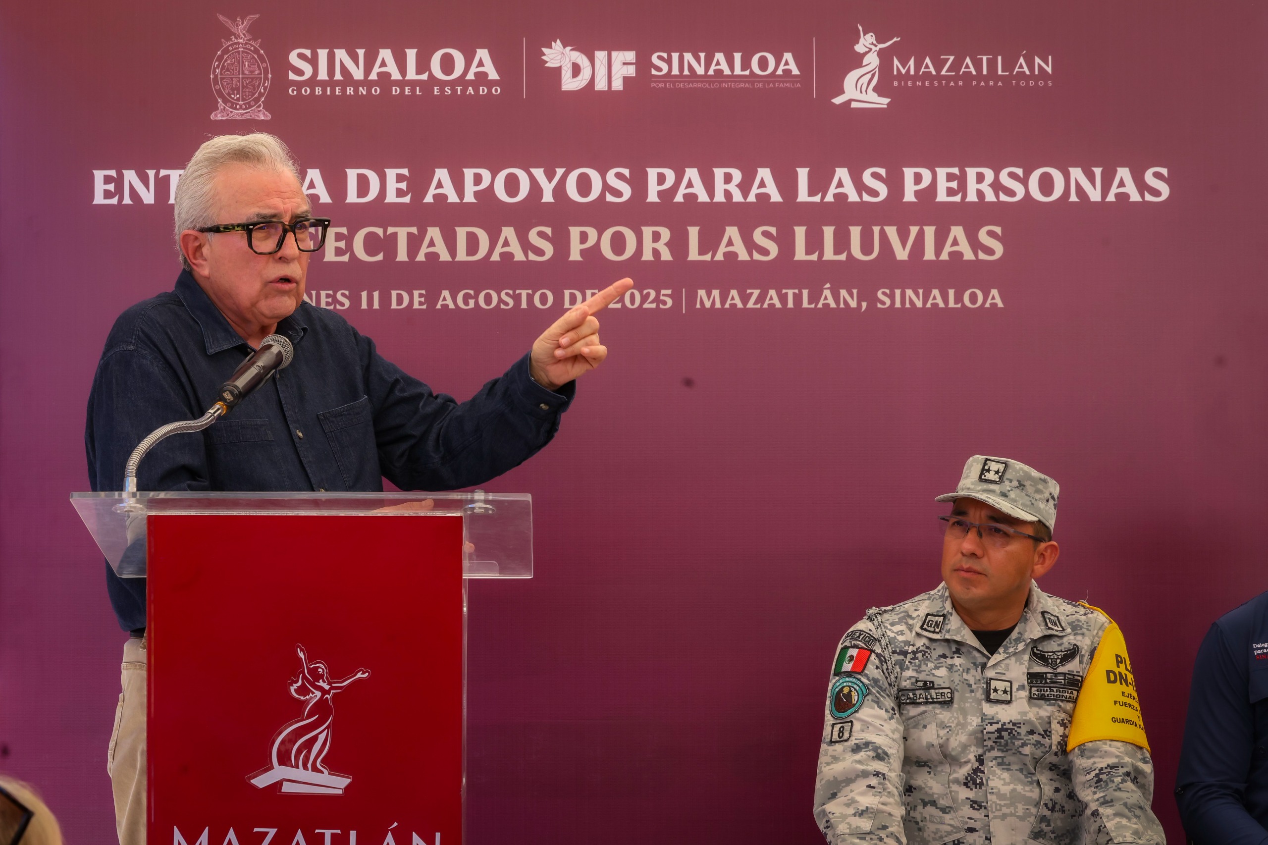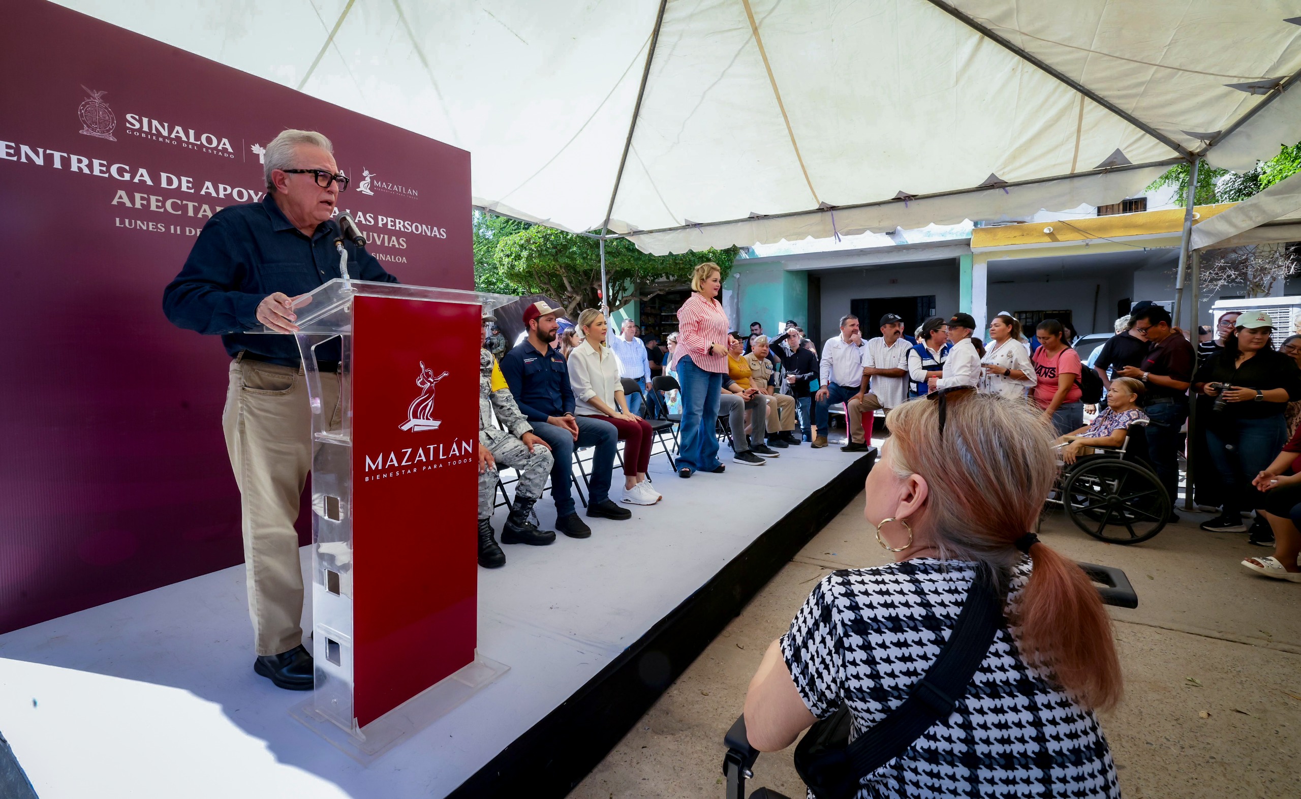 Mazatlán, Sinaloa 11 de agosto de 2025.- Como parte de su compromiso de atención oportuna y contacto cercano con la gente, el gobernador, Rubén Rocha Moya, entregó de manera directa un apoyo económico a las familias afectadas por las intensas lluvias registradas el pasado 7 de agosto, en el puerto.