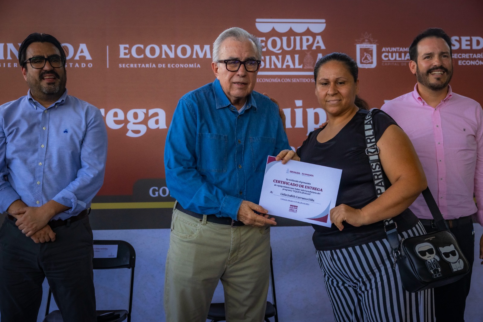 Por su parte, Ricardo Velarde, destacó que, desde la secretaría de Economía se desarrollan programas para que emprendedores y microempresarios continúen creciendo y consolidando sus proyectos, para mejorar sus condiciones de vida e ingresos. “Hoy estamos aquí por cumplir, pero sobre todo para respaldar el gran sueño de muchos de ustedes de generar un emprendimiento, con Equipa Sinaloa, no solo entregamos un equipo, sino que impulsamos un proyecto de vida”, sostuvo el funcionario estatal.