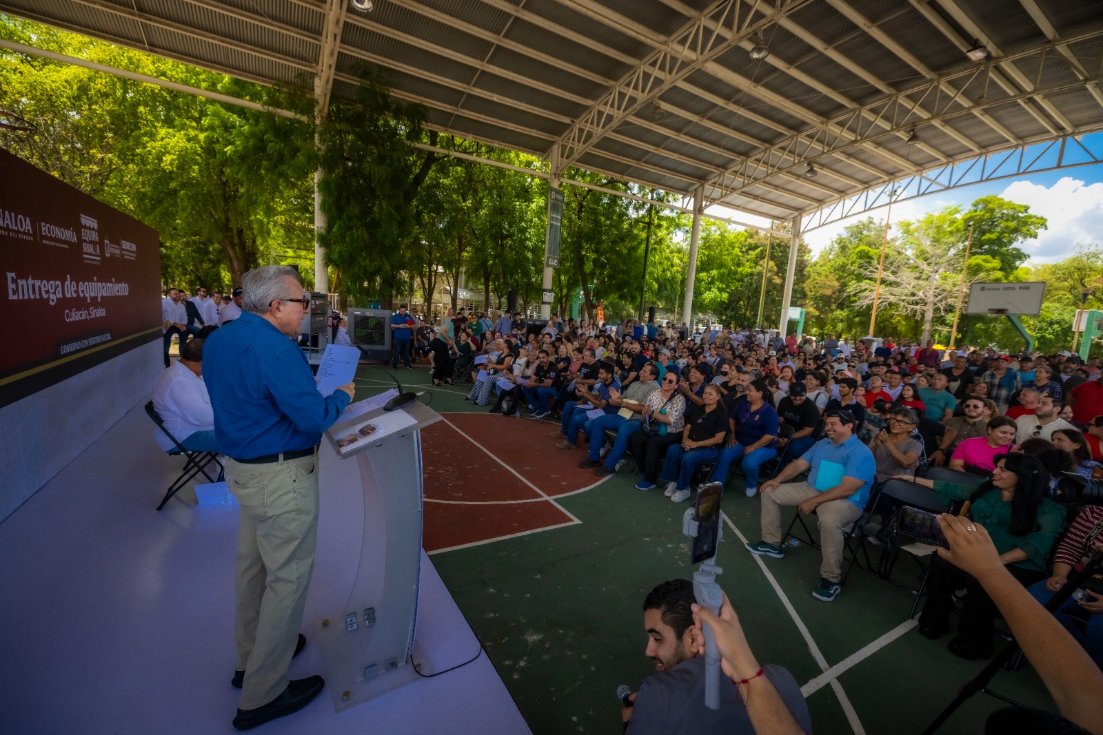 Culiacán, Sinaloa 07 de julio de 2025.- Firme en su compromiso de fortalecer la actividad económica y la generación de empleos, el gobernador Rubén Rocha Moya, hizo entrega de 549 equipos productivos a emprendedores y microempresarios de Culiacán, a través del programa Equipa Sinaloa, con el objetivo de que su negocio crezca, se consolide y contribuya al desarrollo económico de su comunidad.