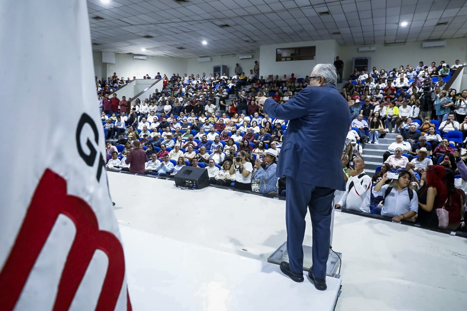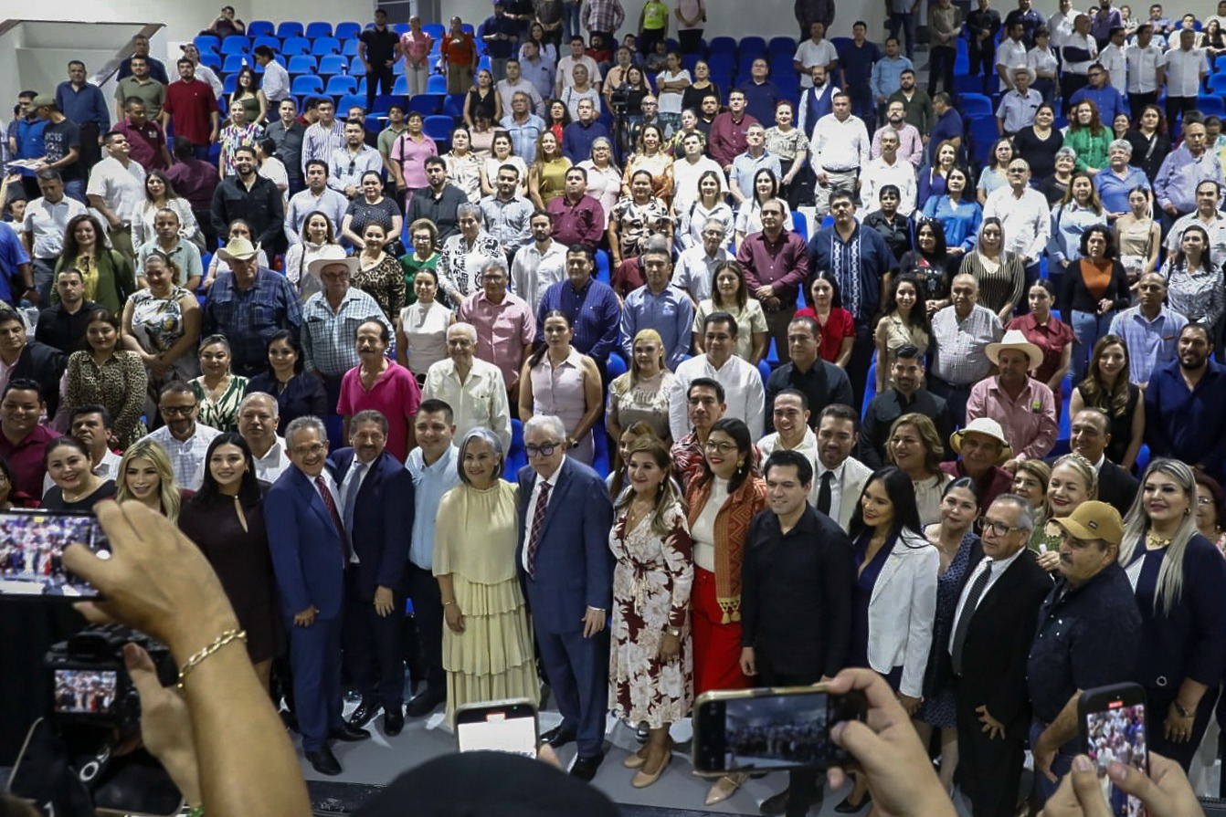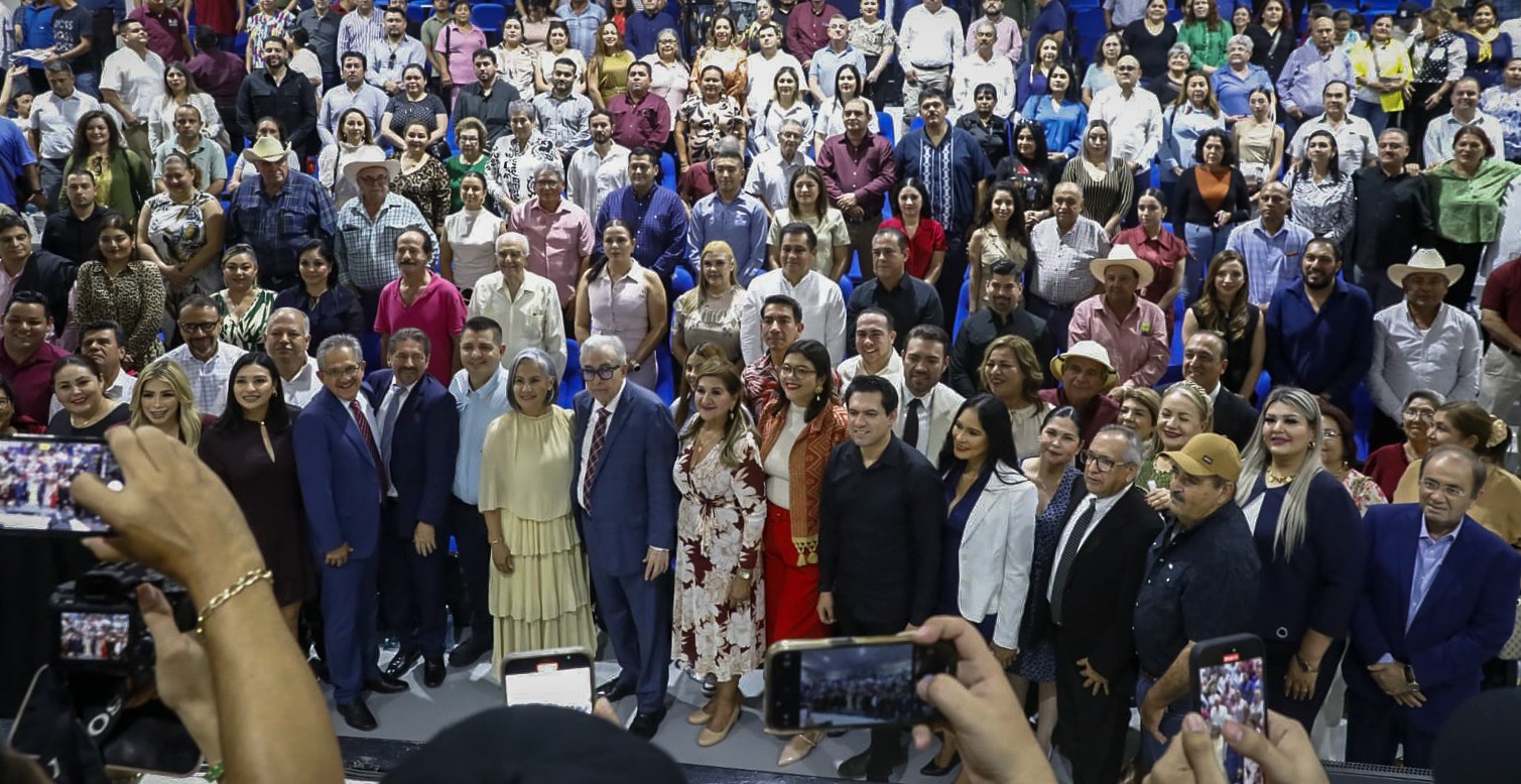 Guamúchil, Salvador Alvarado, Sinaloa, a 13 de septiembre de 2025.- El gobernador Rubén Rocha Moya asistió al informe conjunto que rindieron las diputadas y diputados locales de Morena de la región del Évora, de la 65 Legislatura del Congreso del Estado, donde felicitó el trabajo de las y los legisladores y reconoció el apoyo que le otorgan a su gobierno para poder llevar los beneficios sociales a la población.