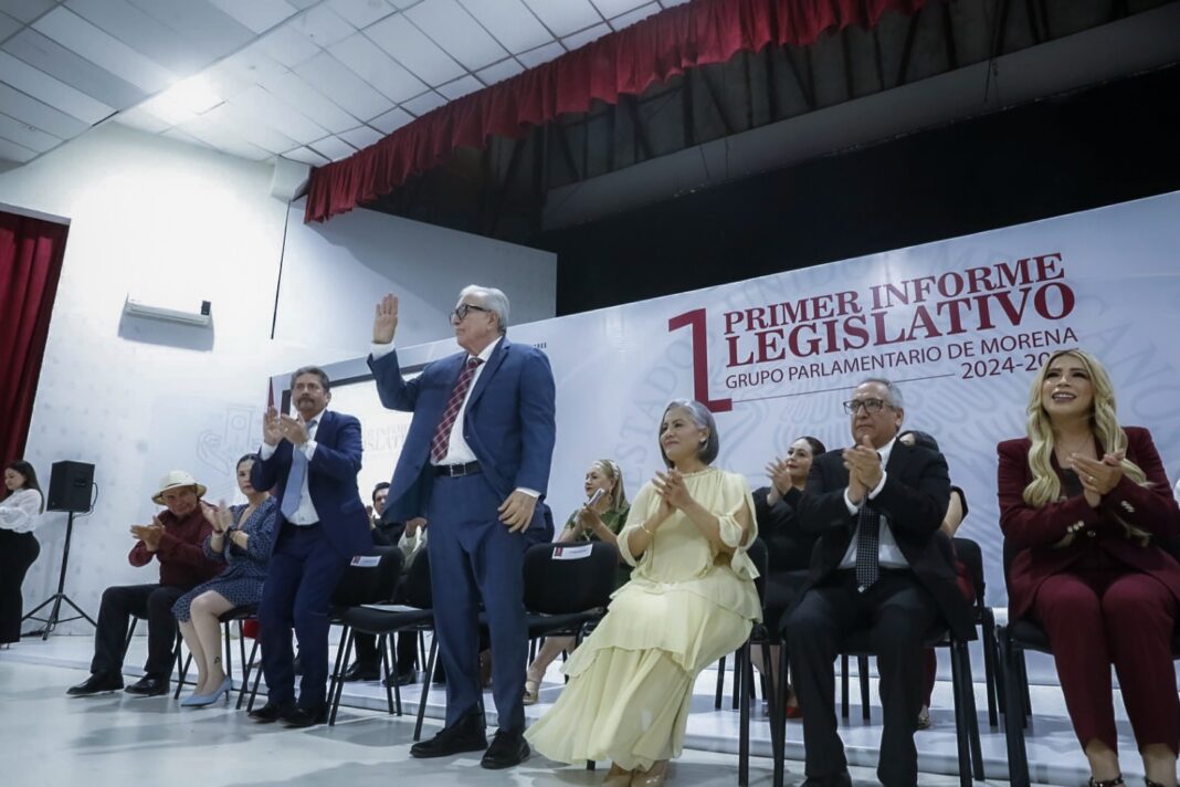 El mandatario estatal asistió al informe que rindieron las legisladoras y legisladores locales del Movimiento de Regeneración Nacional de la región del Évora