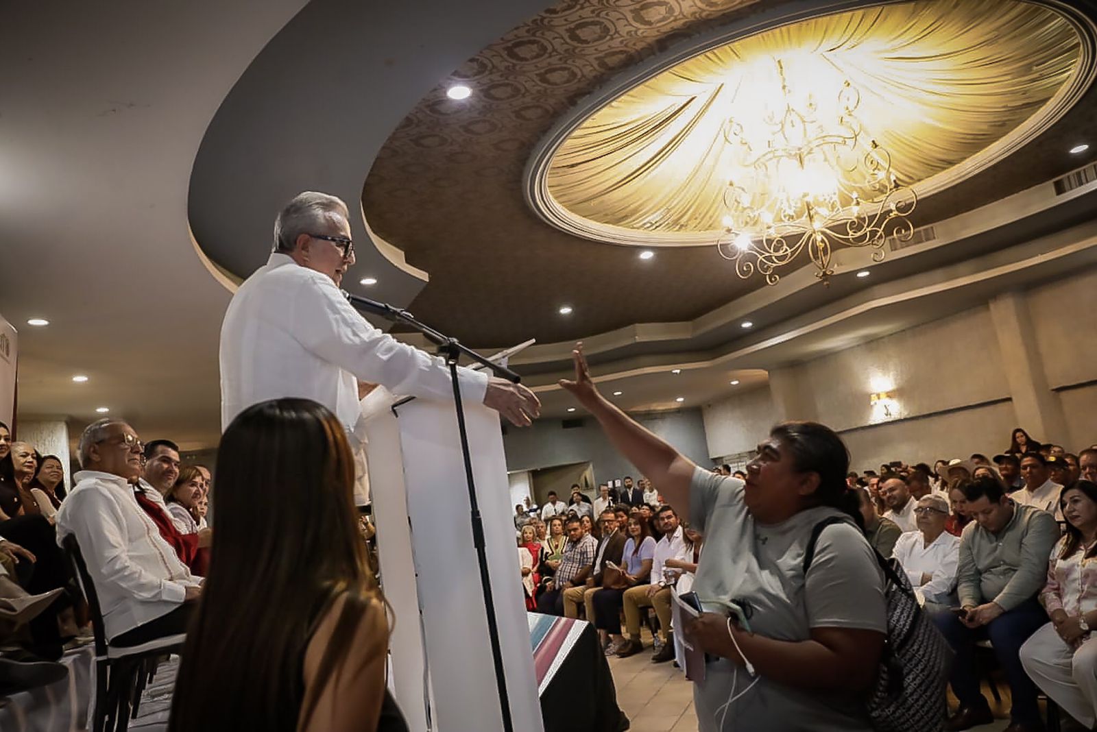 Acompañaron al gobernador y legisladores morenistas Feliciano Castro Meléndrez, secretario General de Gobierno; Ana Ayala, diputada Federal; Jesús Rodolfo Cuadras, rector de la Universidad Indígena de México; Cutberto Ríos, secretario del Ayuntamiento de Ahome; Rodolfo Valenzuela, del grupo parlamentario del Partido Verde Ecologista de México y Montserrat López López, del grupo parlamentario del Partido del Trabajo, así como Gobernadores Indígenas, lideres de organizaciones de la sociedad civil, regidores, funcionarios y funcionarias municipales, presidentes e integrantes de las cámaras empresariales, productores, pescadores y pescadoras, lideres sindicales, maestras, maestros, trabajadores del sector salud y público en general.