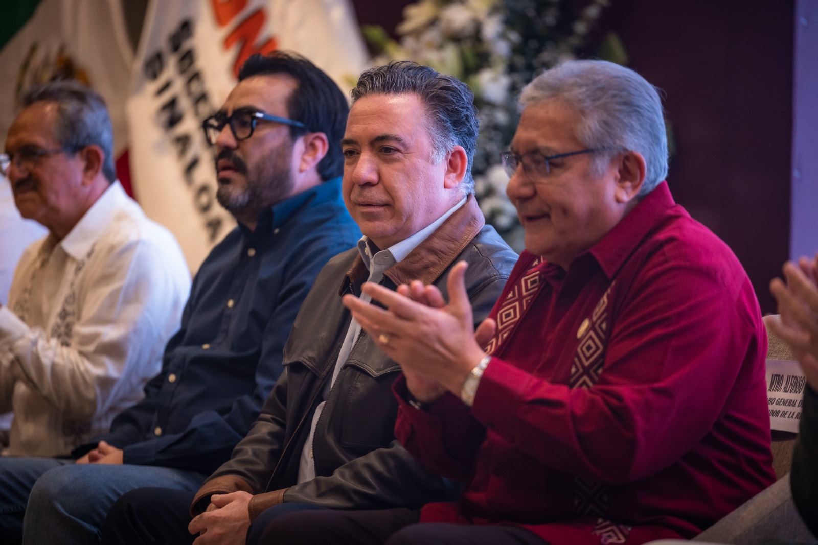 Acompañaron al Gobernador Rocha en este evento, Gloria Himelda Félix, secretaria de Educación Pública estatal; el Senador Enrique Inzunza Cázarez; Teresa Guerra Ochoa, presidenta de la JUCOPO; Juan de Dios Gámez, alcalde de Culiacán; Manuel Guerrero, diputado titular de la comisión de educación del Congreso del Estado; Santiago Inzunza Cázares, director general de COBAES, Genaro Torrecillas López, Secretario del SNTE Sección 27; invitados especiales, directores y jefes de departamento de SEPyC, directores y subdirectores de escuelas, así como personal beneficiado con la promoción.