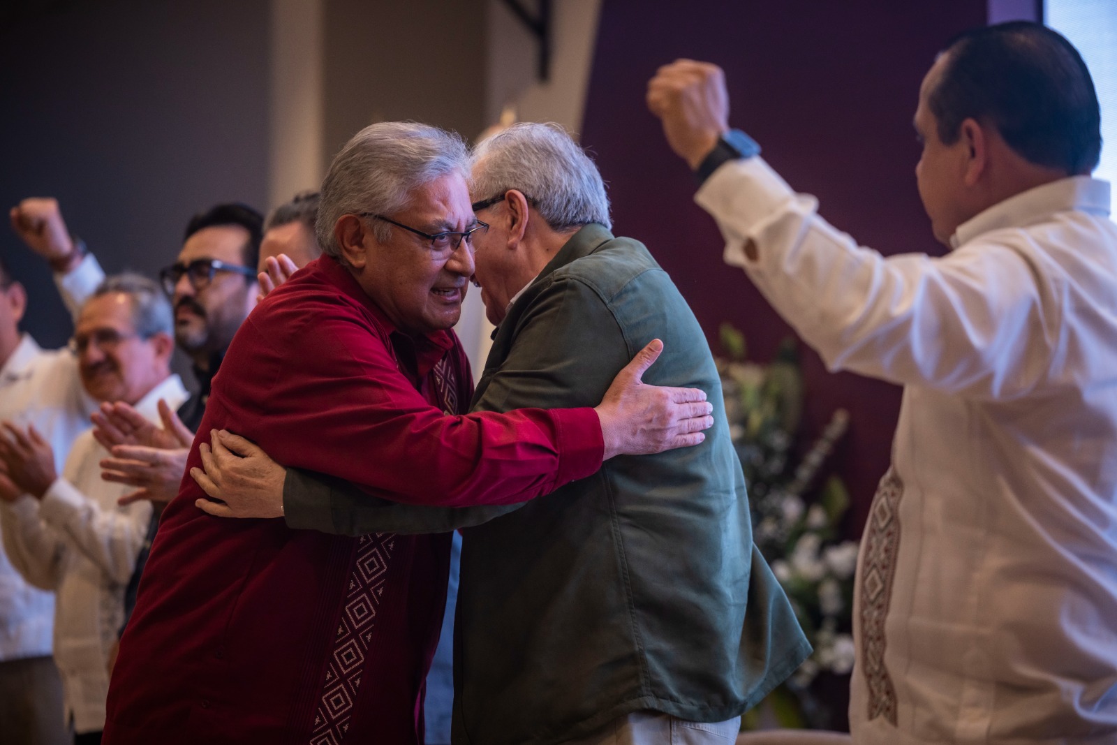 “Felicito que se haya ido caminando por el bien de los maestros y no solamente los maestros, es el tema del personal de apoyo, pues hoy tiene la ventaja que se les ha recompensado con un tema que es clave, se llama definitividad en el trabajo, ¿qué quiere decir eso? Pues la base, se dice certeza laboral”, afirmó el mandatario estatal.