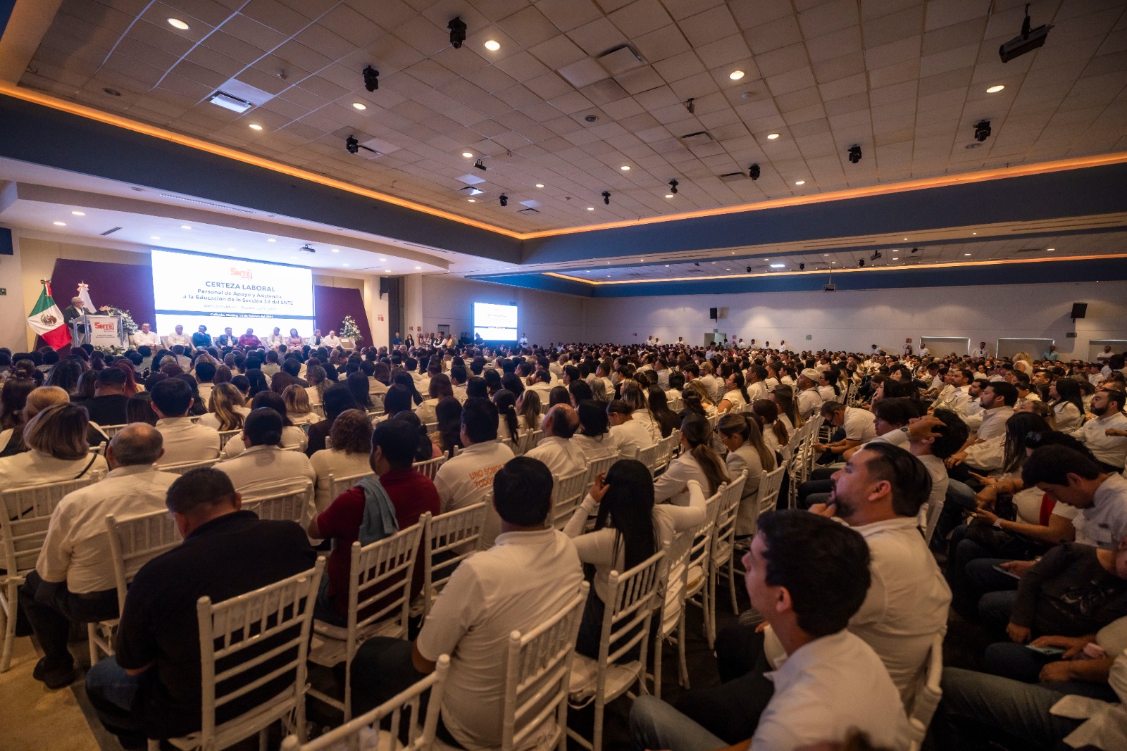 “Hoy entregamos mil 58 memorándum de base y con cada uno de ellos entregamos certeza, dignidad, justicia y tranquilidad. Tranquilidad para ustedes y para sus familias, tranquilidad de saber que su trabajo, esfuerzo y constancia tiene un respaldo firme, legal y definitivo. Quiero decirlo con toda claridad y toda fuerza, sin el Personal de Apoyo y Asistencia a la Educación la escuela no funciona”, precisó el líder del SNTE 53.