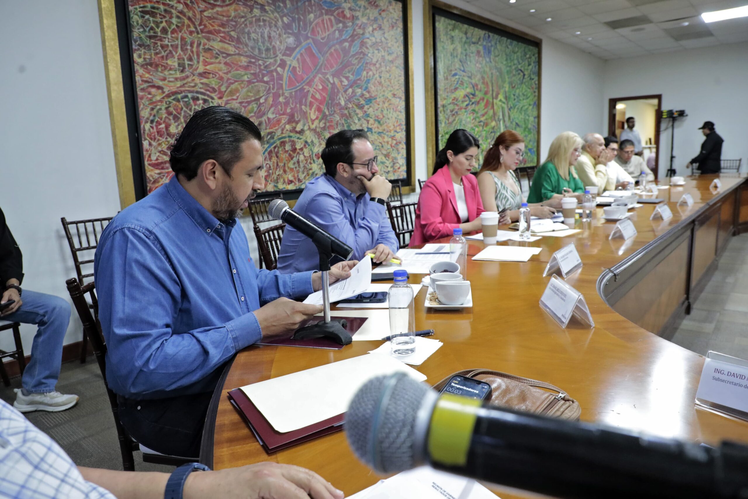 La reunión estuvo moderada por el subsecretario de Planeación, Inversión y Financiamiento de la secretaría de Administración y Finanzas, David Moreno Lizárraga, quien dio la palabra a todos los miembros del gabinete, quienes intervinieron de acuerdo al eje en el que les corresponde, siendo el primero de ellos el eje: “Gobierno Democrático Promotor de Paz, Seguridad, Ética y Eficiencia”, en el que participaron el secretario General de Gobierno, Feliciano Castro Meléndrez; el subsecretario de Seguridad Pública, Humberto Zerón Martínez en representación del secretario Óscar Rentería; el secretario de Administración y Finanzas, Joaquín Landeros Guicho; la secretaria de Transparencia y Rendición de Cuentas, María Guadalupe Ramírez Zepeda; y el coordinador de Desarrollo Tecnológico y Proyectos Especiales, Rodolfo Monreal Ávila.