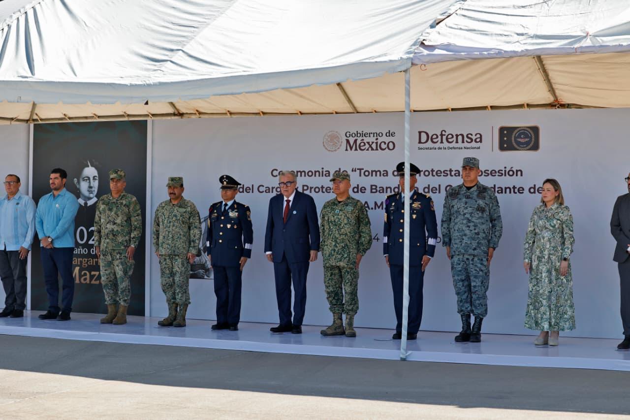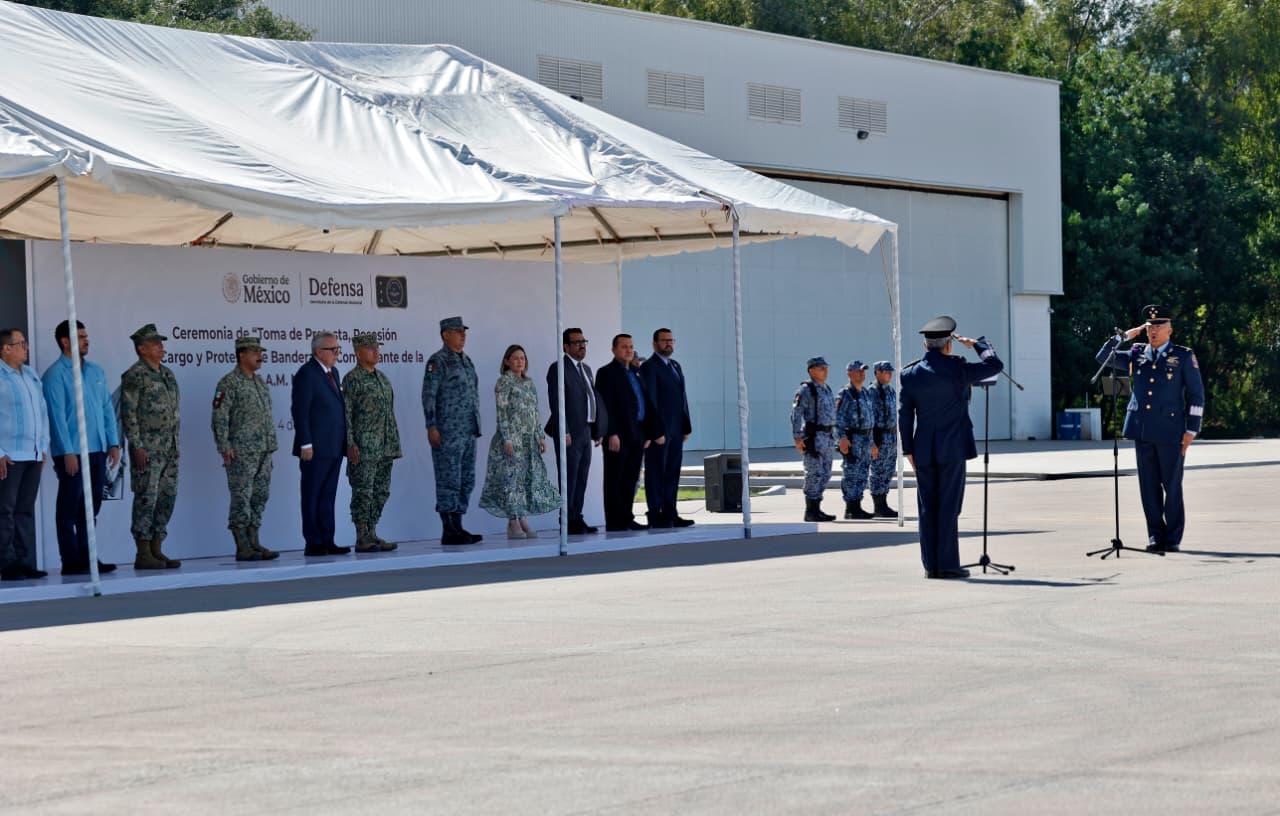 La toma de protesta del nuevo comandante estuvo a cargo del general de División Piloto Aviador, Carlos de Jesús Gracia Ríos, comandante de la Región Aérea Militar del Noroeste, para dar cumplimiento así al mandato de la presidenta de la República y comandanta suprema de las Fuerzas Armadas, Claudia Sheimbuam Pardo.