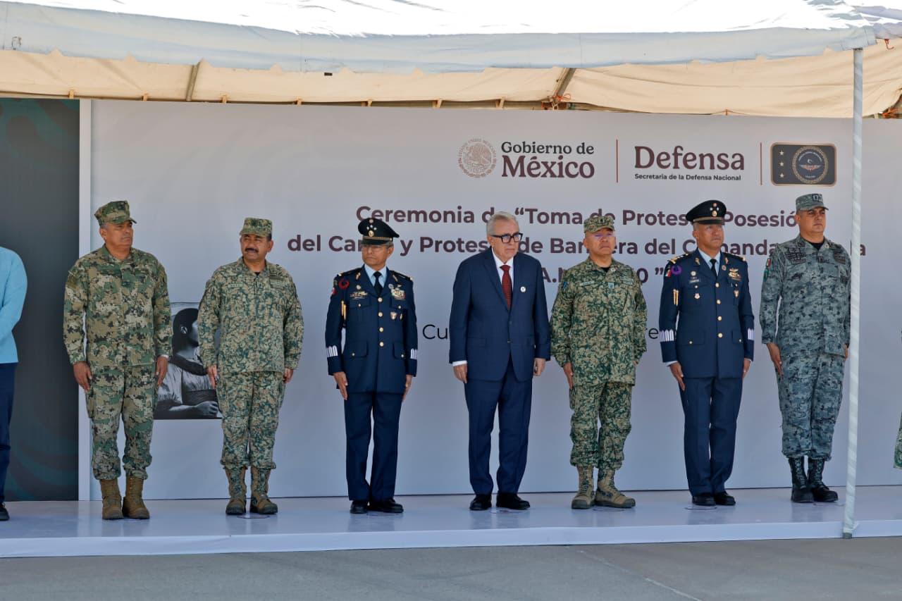 El mandatario estatal asistió al cambio de mando en la Base Aérea Militar No. 10, que será comandada por el general de Ala, Edgar Emanuel Campos Martínez