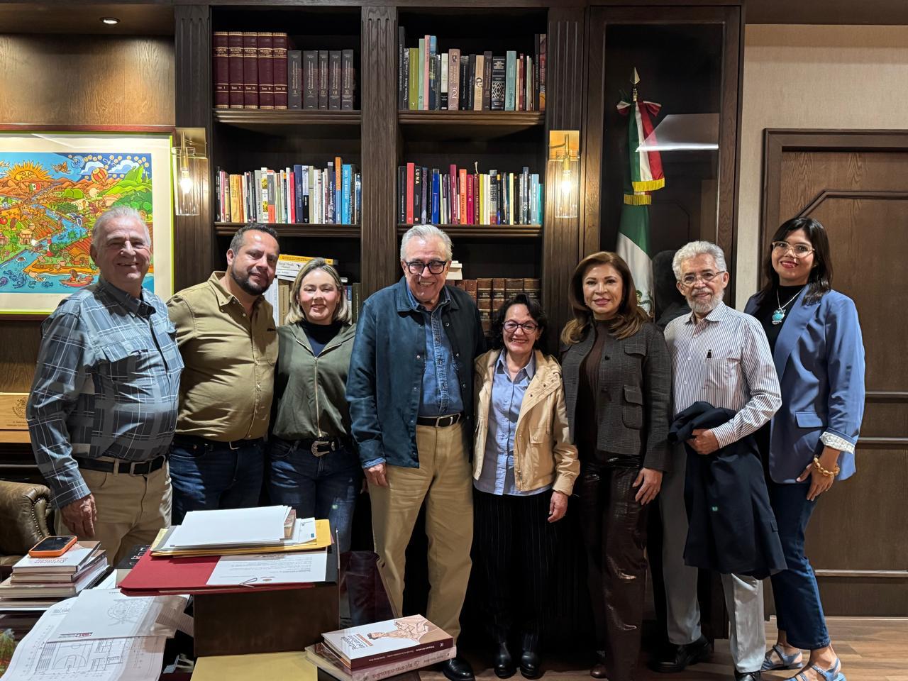 El mandatario estatal estuvo acompañado en este encuentro por la secretaria general de Gobierno, Yeraldine Bonilla Valverde; por la secretaria de Educación Pública y Cultura, Gloria Himelda Féliz Niebla; por el subsecretario de Educación Media Superior y Superior, Rodrigo López Zavala; por la diputada local Sthefany Rea Reátiga, presidenta de la Comisión de Cultura y Artes del Congreso del Estado; y por el director de la Ciudad Educadora y Sustentable del Saber, Gómer Monárrez González