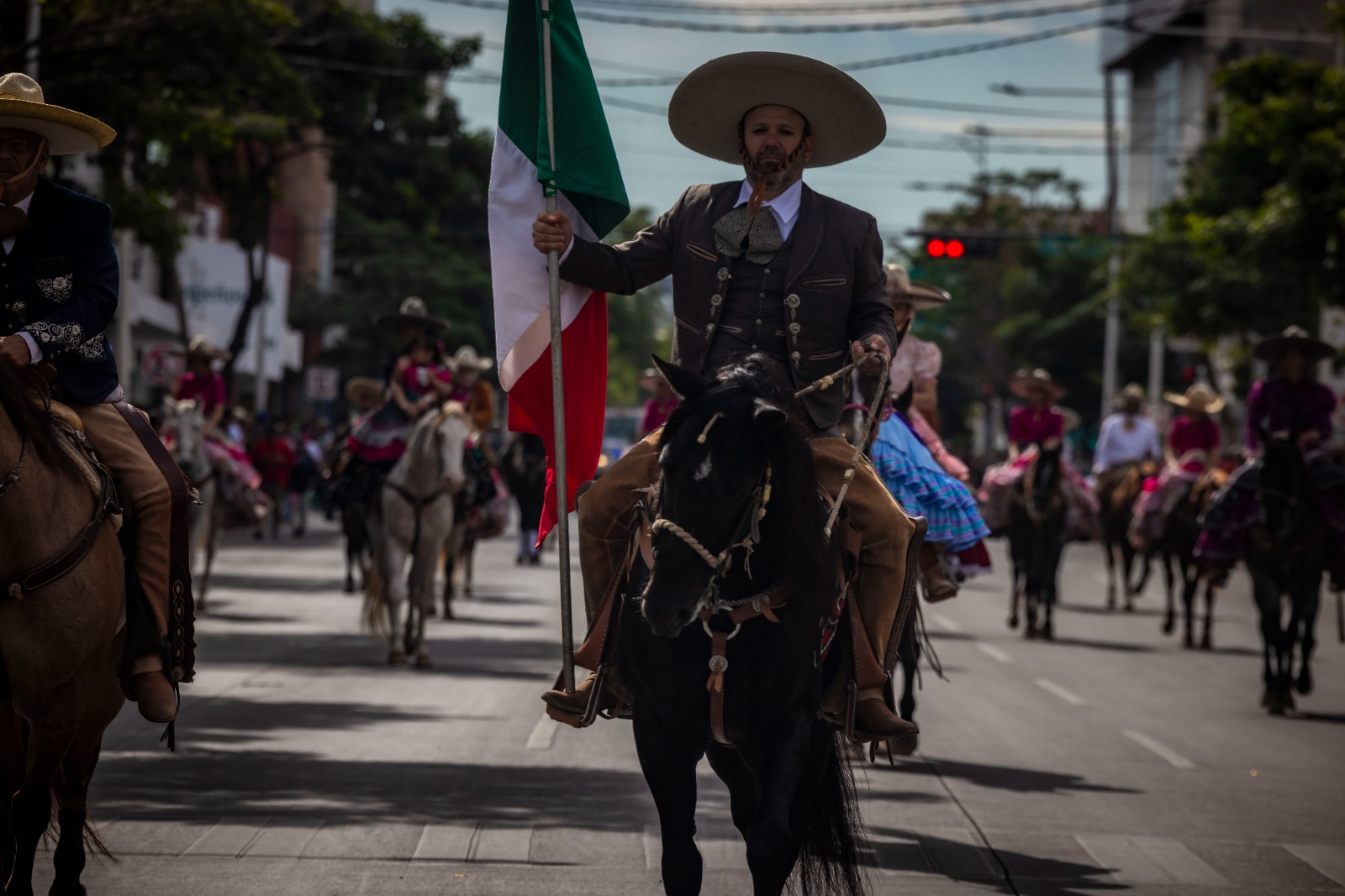 Luego de la conclusión de esta ceremonia, que finalizó con el marcial Toque Tres de Diana en honor a los ascendidos, y el Himno Nacional, el gobernador Rocha, acompañado por los mandos militares y autoridades civiles, subió al balcón de Ayuntamiento para presenciar desde ahí el tradicional desfile cívico militar, que abrió la Banda de Guerra del 94 Batallón de Infantería de la Novena Zona Militar.
