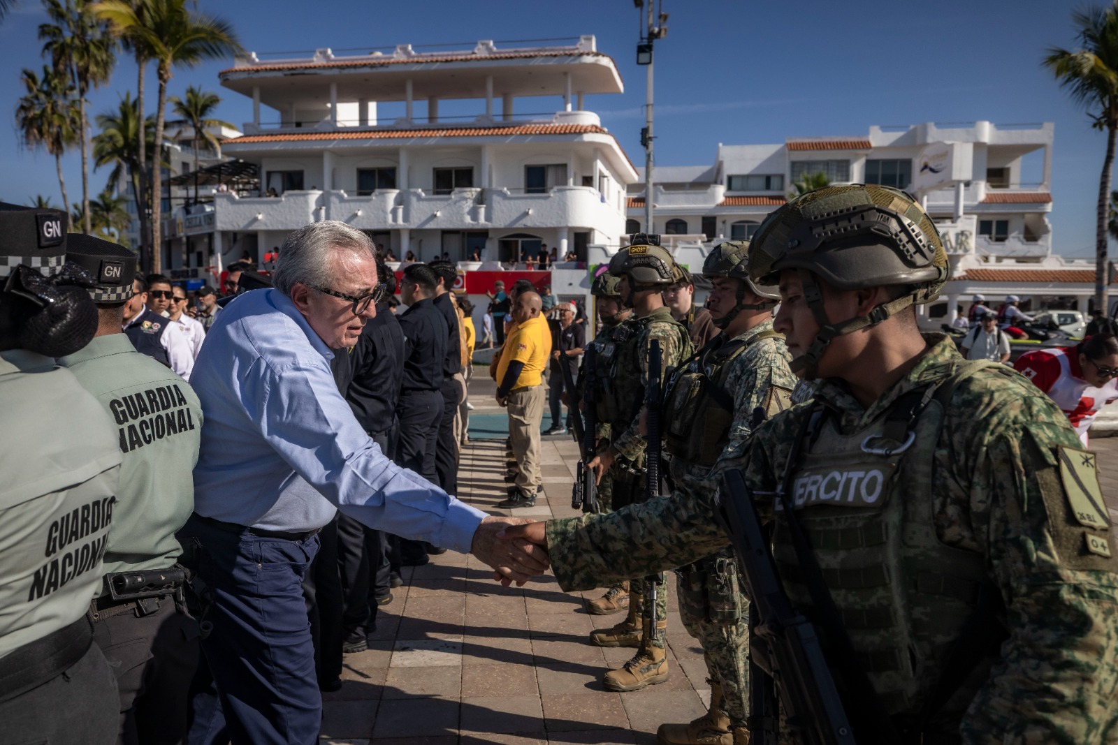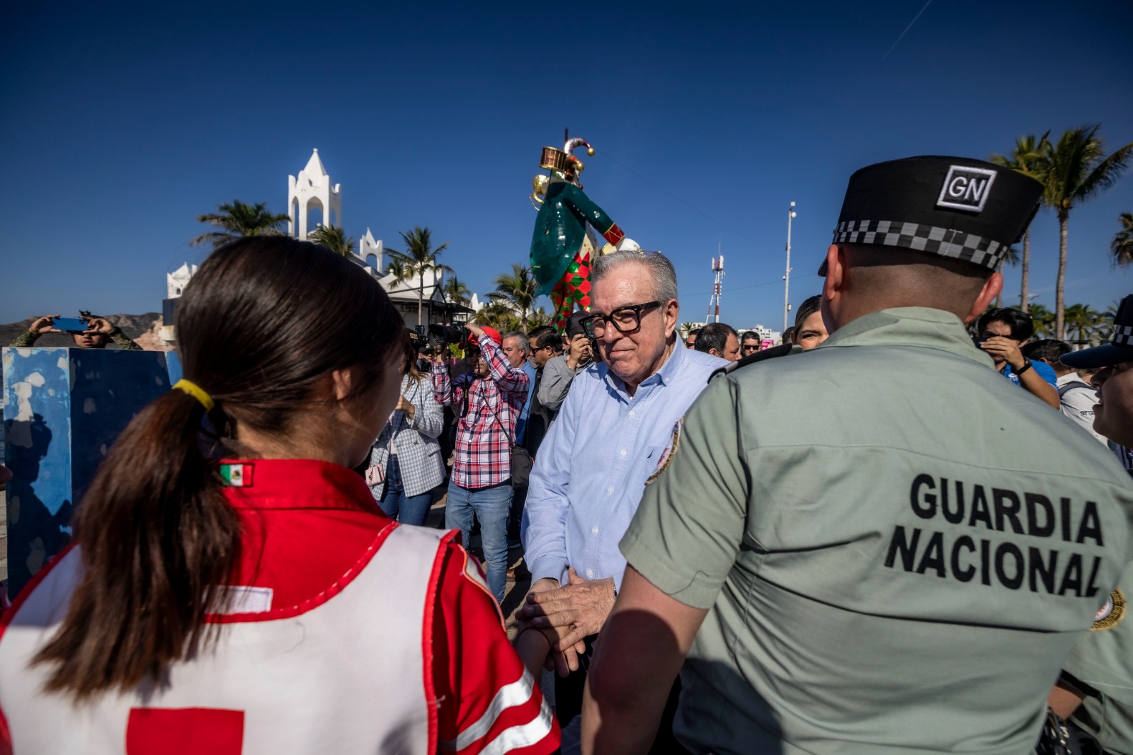 Desde el parador turístico de las letras de Mazatlán, el gobernador Rocha dio el banderazo simbólico al contingente de seguridad integrado por Ejército Mexicano, Marina Armada de México, Guardia Nacional, Secretaría de Seguridad y Protección Ciudadana, todas del ámbito federal, así como a las corporaciones de seguridad estatales y locales, y cuerpos voluntarios de auxilio, como Cruz Roja, Bomberos, Rescate Acuático y Protección Civil.