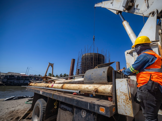 Acompañado por el secretario de Obras Públicas, Raúl Montero Zamudio; y por la alcaldesa de Guasave, Cecilia Ramírez Montoya, el mandatario estatal visitó las obras de cimentación de los 11 pilotes que sostendrán el puente de 300 metros de longitud, trabajos que registran un avance del 30 por ciento, como lo dio a conocer el superintendente de la obra, el ingeniero Rosario Cervantes, quien explicó que una vez concluida la colocación de los pilares, se avanzará de manera más rápida porque ya se cuenta con vigas de prefabricado, por lo que todo el proyecto concluirá en diciembre de este año, en tiempo y forma de acuerdo a lo planeado.