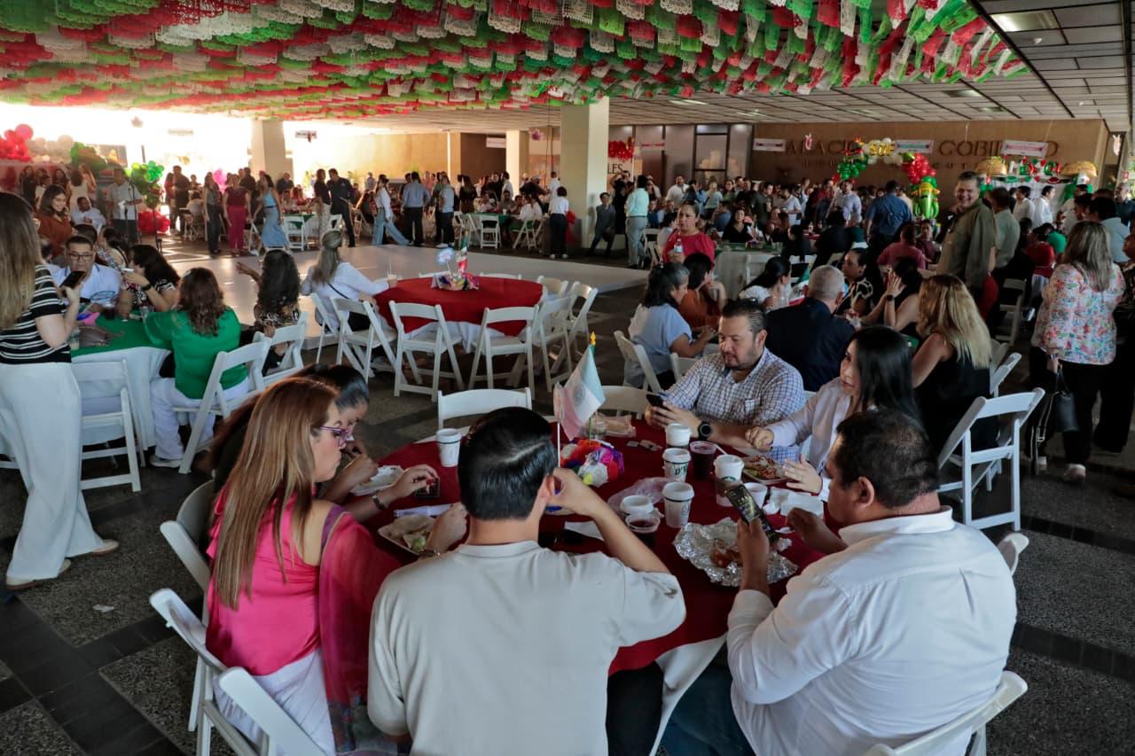 Culiacán, Sinaloa, a 11 de septiembre de 2025.- Miles de sinaloenses se dieron cita en la explanada de Palacio de Gobierno, para recibir apoyos sociales y servicios administrativos gratuitos que se ofrecieron por medio de las Brigadas del Bienestar, así como para degustar platillos tradicionales y antojitos en la tradicional Kermés Mexicana, donde el gobernador Rubén Rocha Moya les dio la bienvenida y los invitó a seguir disfrutando de esta jornada, con todo el toque de las Fiestas Patrias.