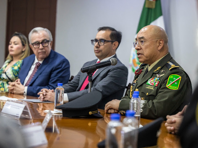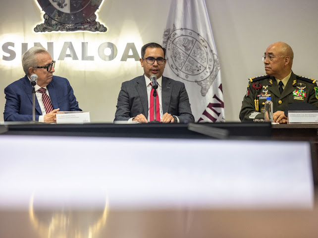 “Y aquí en el estado de Sinaloa se toma como ejemplo, y hay muchas formas de comprobarlo, y los hechos son los que dan fe, dan evidencia del avance que se tiene, cada uno de nosotros desde su particular agenda aporta un capital importantísimo para el objetivo que tenemos; seguiremos trabajando hombro con hombro, codo a codo, no sólo con los integrantes de las Fuerzas Armadas, sino con todos los integrantes de la Mesa de Seguridad y del gabinete estatal, así continuaremos avanzando en el encargo que tenemos en beneficio de todas las y los sinaloenses”, dijo el general.