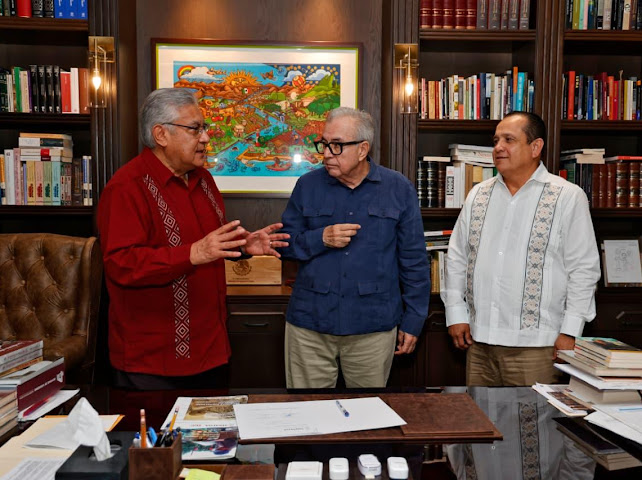 Culiacán, Sinaloa, a 13 de febrero de 2026*.- El gobernador Rubén Rocha Moya recibió en su Despacho de Palacio de Gobierno al dirigente nacional del SNTE, Alfonso Cepeda Salas, y al secretario general de la Sección 53 de esta organización magisterial, Ricardo Madrid Uriarte.