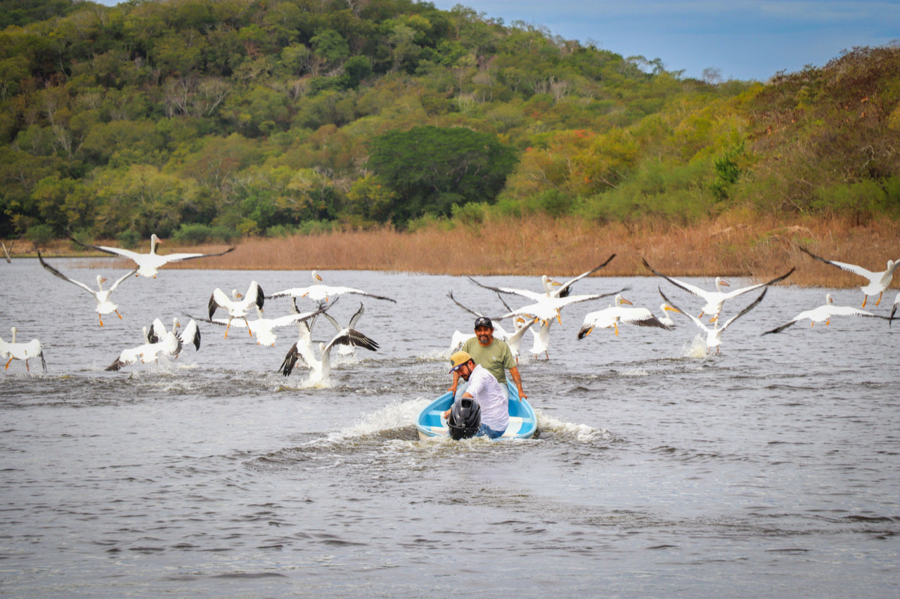 Rosario, Sinaloa a 5 de diciembre de 2025.- La Secretaría de Pesca y Acuacultura del Gobierno del Estado de Sinaloa realizó la entrega del Programa de Apoyo para la Adquisición de Pangas y Motores Marinos a pescadoras y pescadores de la Presa “Las Higueras”, en el municipio de Rosario.