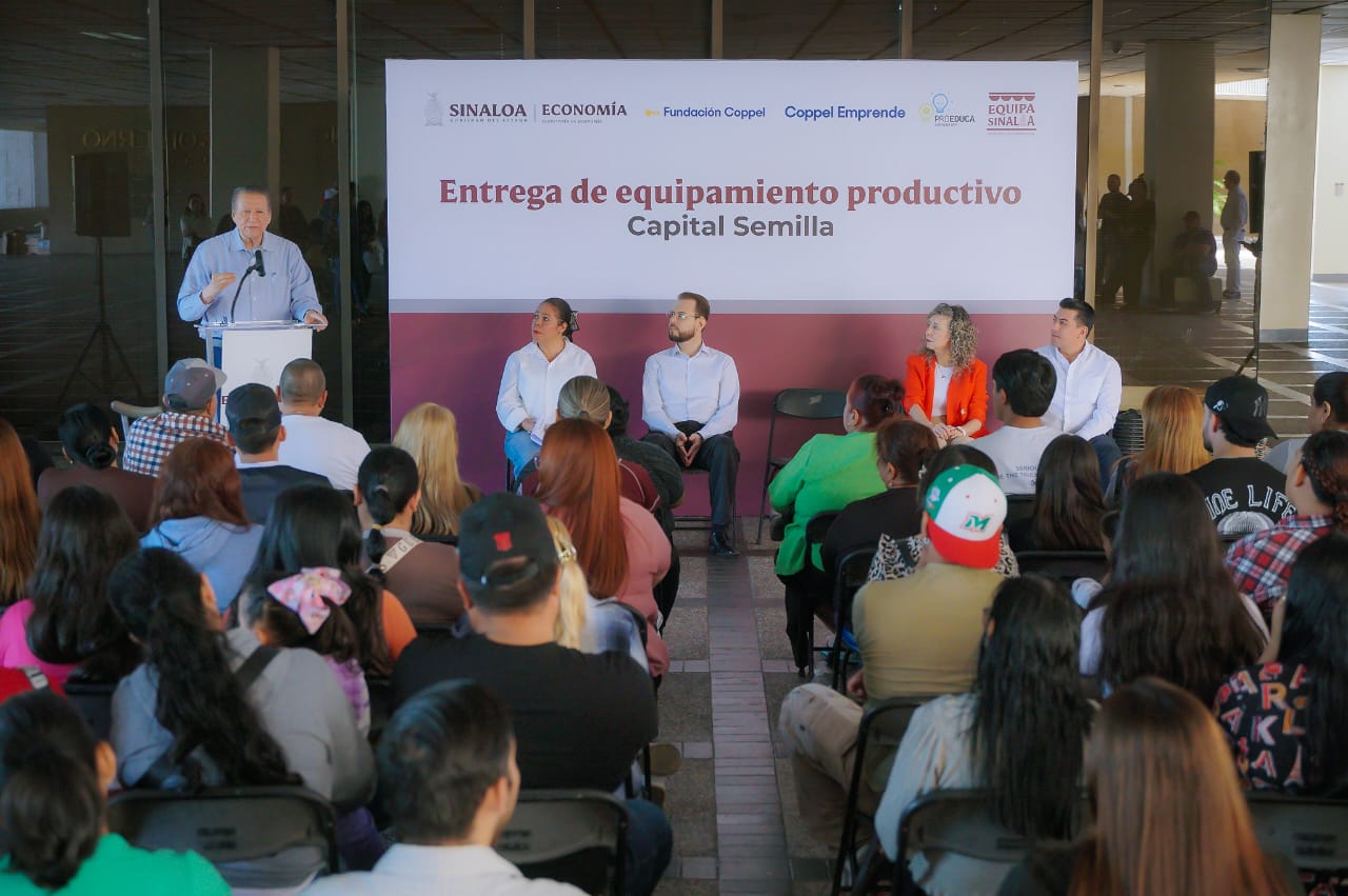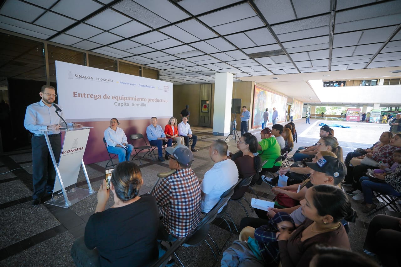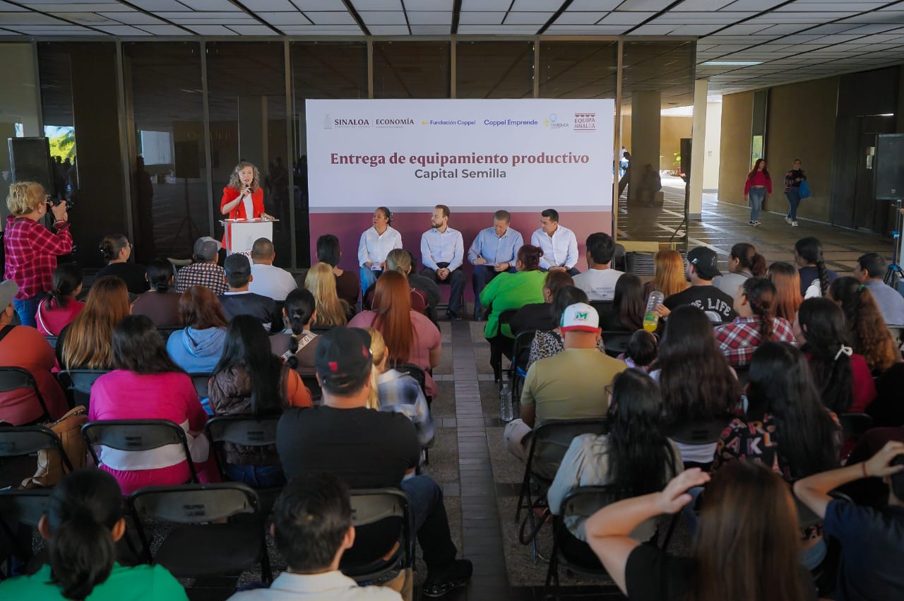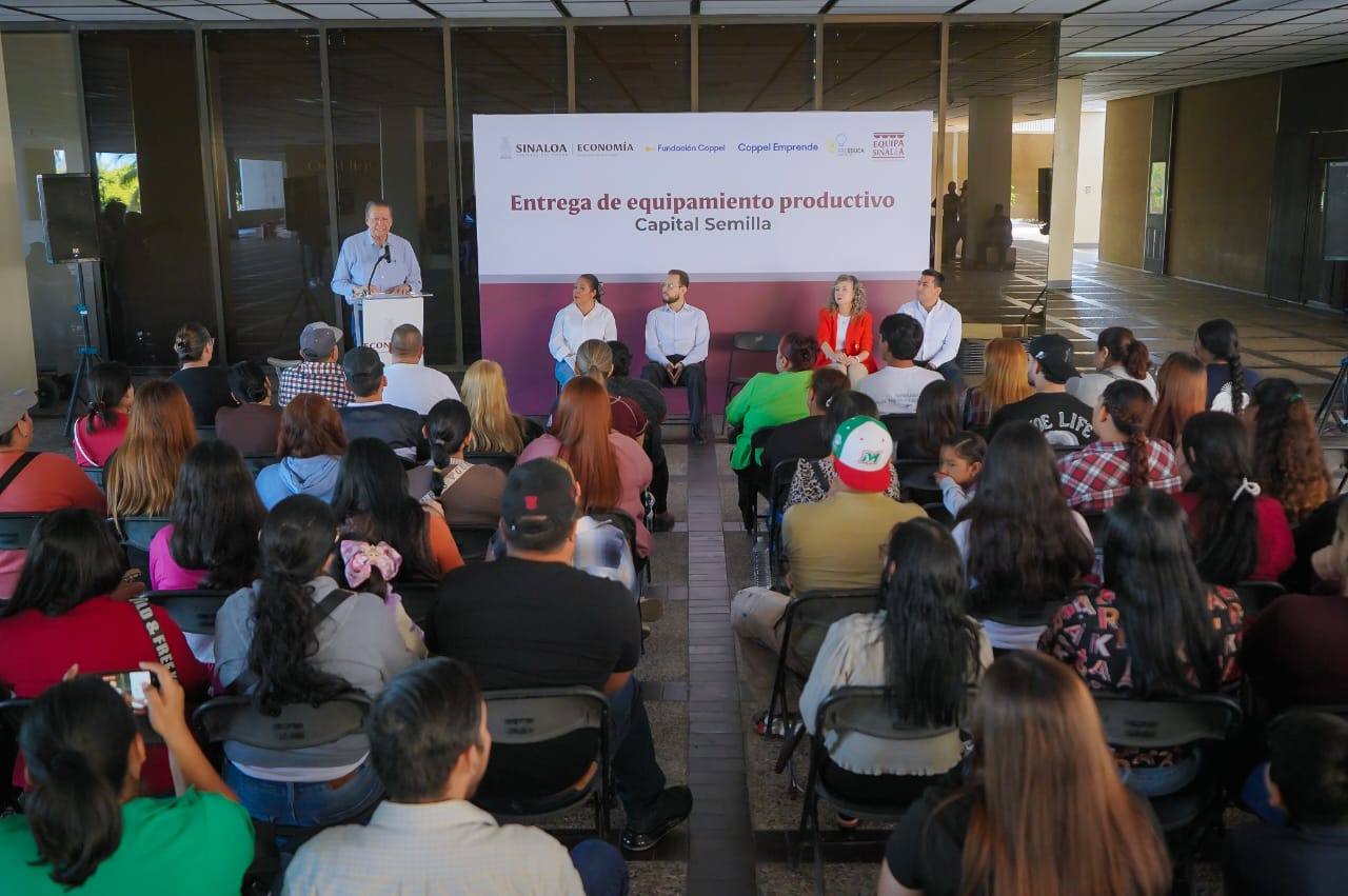 Culiacán, Sinaloa, 13 de enero de 2026.- Como parte de una política pública con enfoque humanista y de acompañamiento directo a quienes generan empleo y sostienen la economía local, el Gobierno de Sinaloa, en coordinación con Fundación Coppel, realizó la segunda entrega de equipamiento productivo del programa Capital Semilla, beneficiando a dueñas y dueños de micro, pequeñas y medianas empresas del estado.