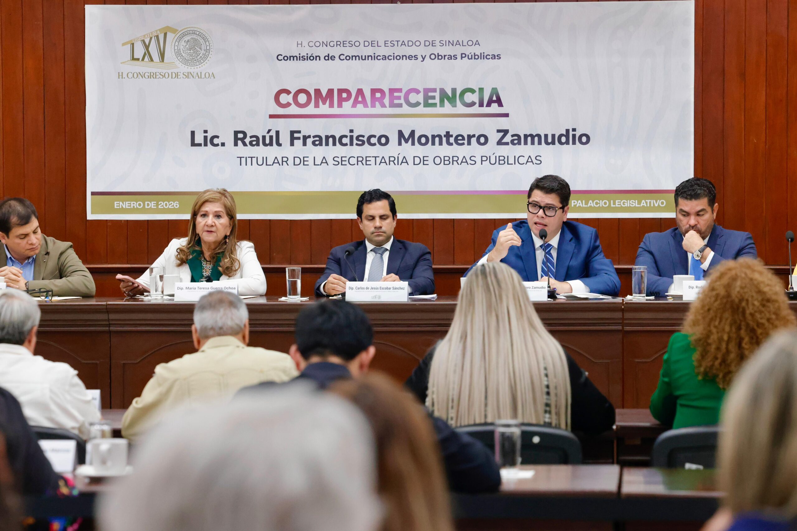 Culiacán, Sinaloa, 21 de enero de 2026.- Gobierno del Estado destinó en 2025 a infraestructura para el desarrollo económico y el bienestar de las y los sinaloenses, 5 mil 123 millones de pesos, distribuidos en 623 obras de infraestructura, informó el secretario de Obras Públicas, Raúl Montero Zamudio, al comparecer en el Congreso, por la Glosa del Cuarto Informe de Gobierno.