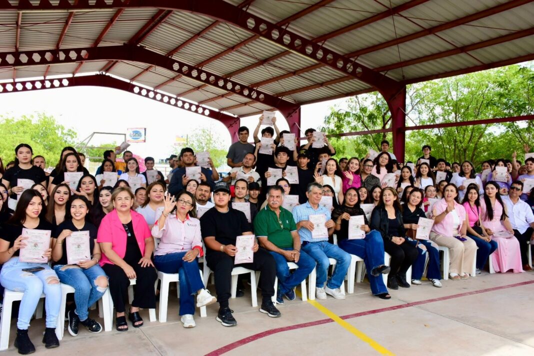 Durante la clausura masiva se entregaron constancias de cursos como Maquillaje de rostro, Básico de carpintería, Confección de pantalón, Uñas acrílicas, Básico de costura, Preparación de alimentos orientales, Uso de la Inteligencia Artificial, Reparación y mantenimiento de minisplit, Básico de barbería y Repostería y decorado de pasteles, entre otros, brindando herramientas que fortalecen el empleo y el emprendimiento en la región.