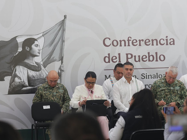 Mazatlán, Sinaloa, a 27 de febrero de 2026.- Durante la Conferencia del Pueblo ofrecida por la presidenta de la República, Claudia Sheinbaum Pardo desde Mazatlán, se brindó un balance de la estrategia de seguridad en Sinaloa, que comprende del 1 de octubre de 2024 al 15 de febrero de 2026, en el cual destaca la reducción del 50 por ciento de los homicidios dolosos, un 31 por ciento en delitos de alto impacto, el aseguramiento de 4 mil 850 armas de fuego, la detención de más de 2 mil 200 generadores de violencia, la incautación de más de 33 toneladas de diversa droga y se desmantelaron mil 942 laboratorios clandestinos de drogas sintéticas.