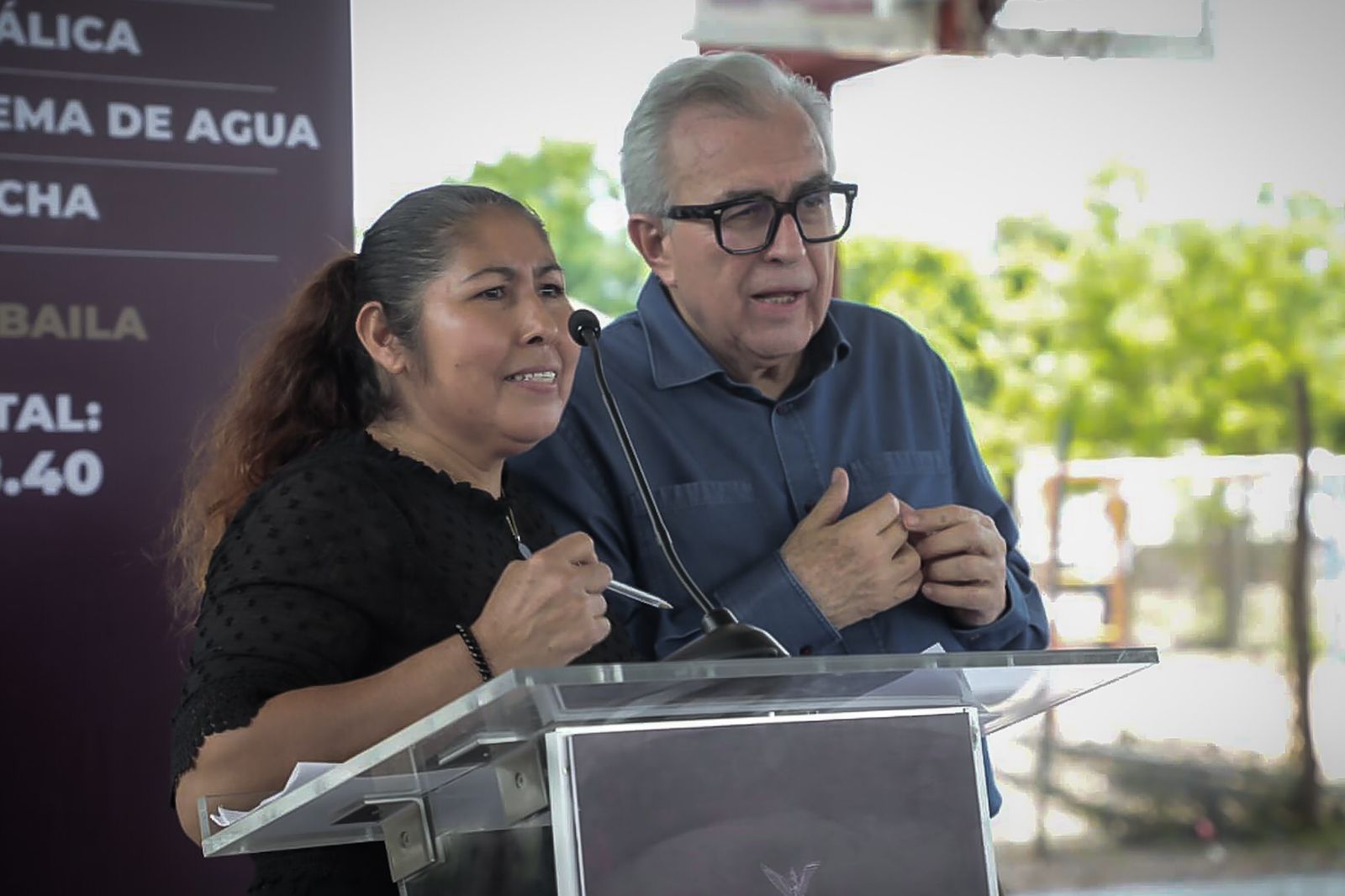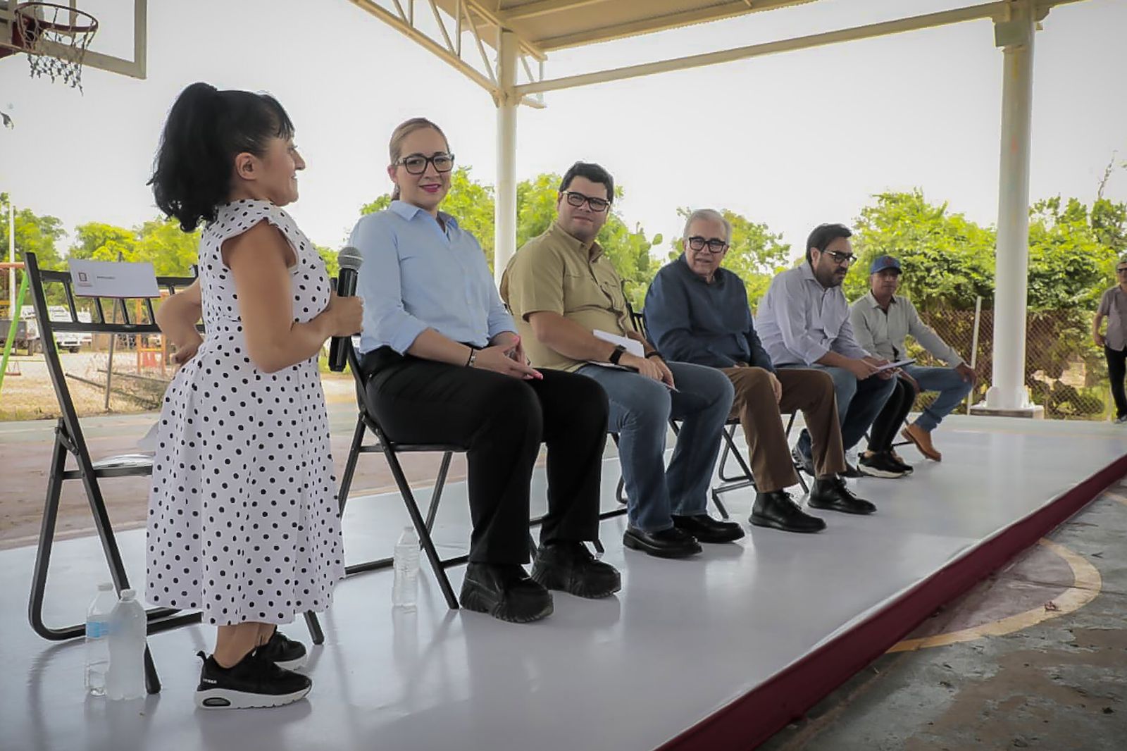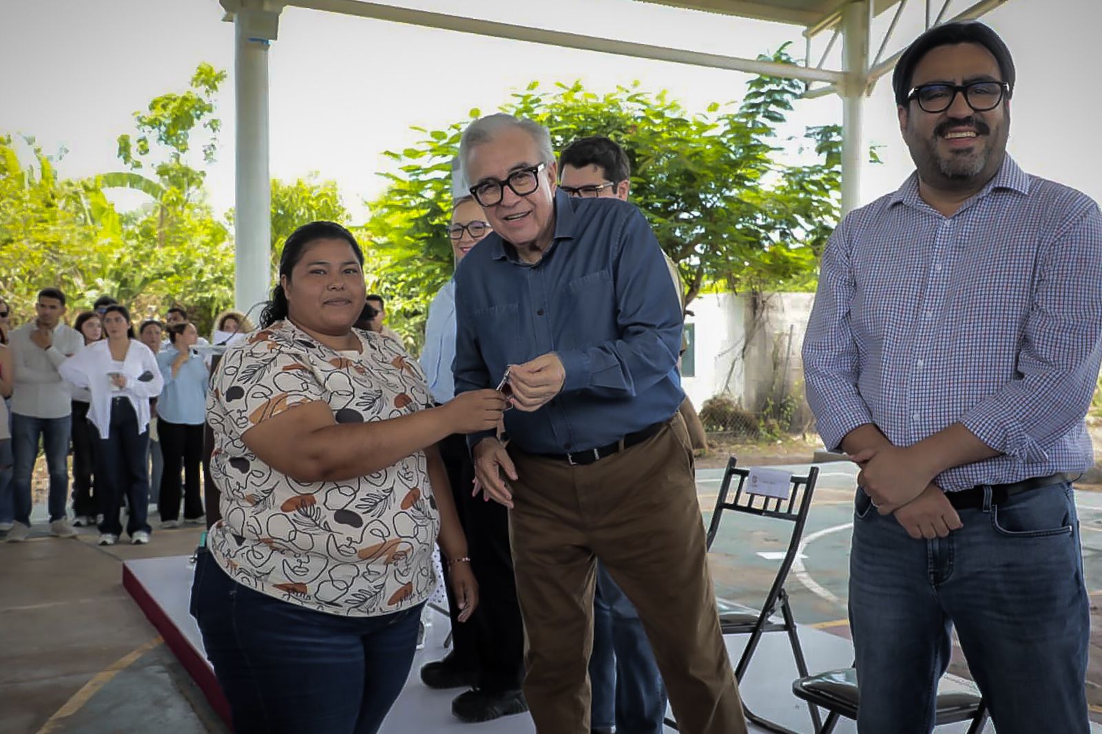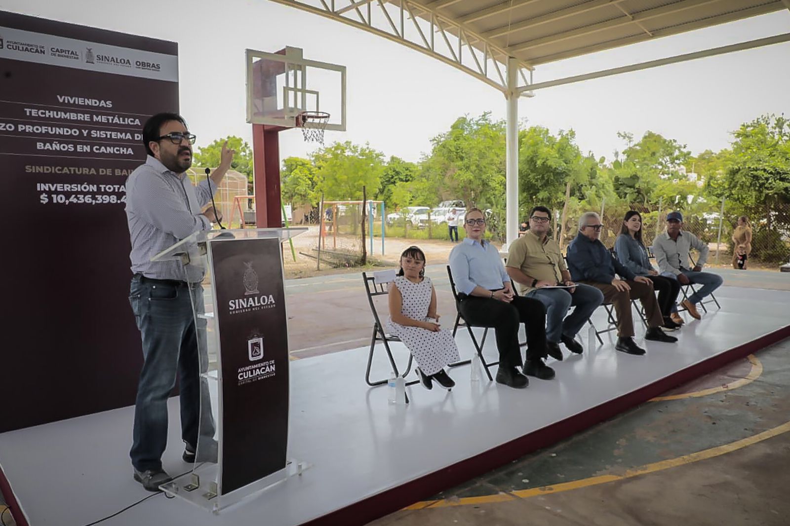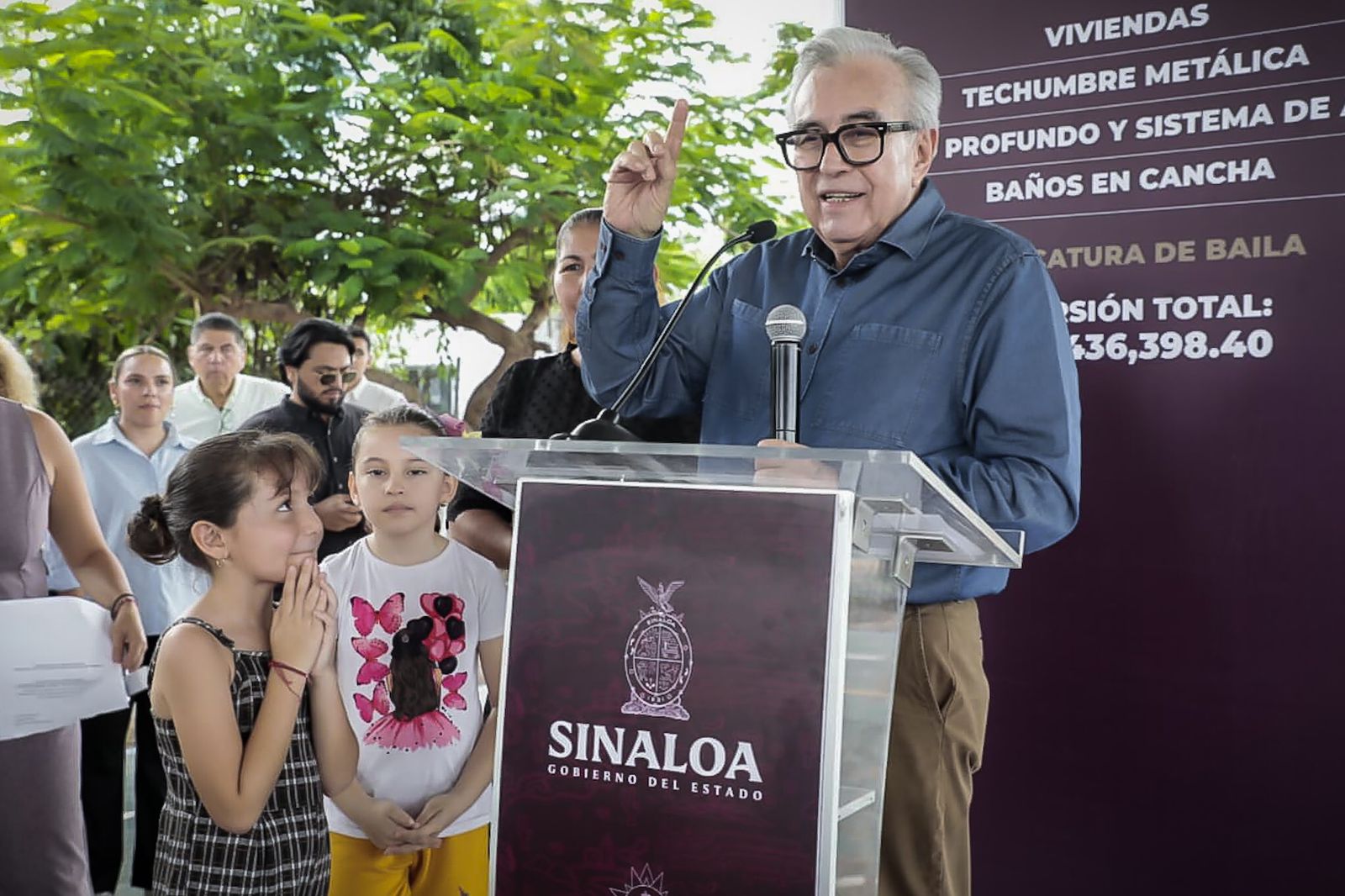 En la ceremonia acompañaron al gobernador Rubén Rocha Moya, el alcalde de Culiacán Juan de Dios Gámez Mendívil, la presidenta del Sistema DIF Municipal, Irma Nidia Gazca, el secretario de Obras del gobierno estatal, Raúl Montero, la Secretaría de Obras Municipales, María del Carmen Morales, el Síndico de Baila, José Luis Millán, y en representación de los vecinos beneficiados, María del Socorro Ayala.