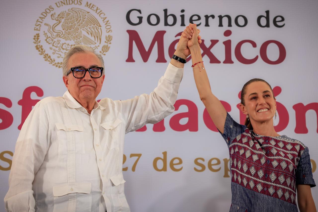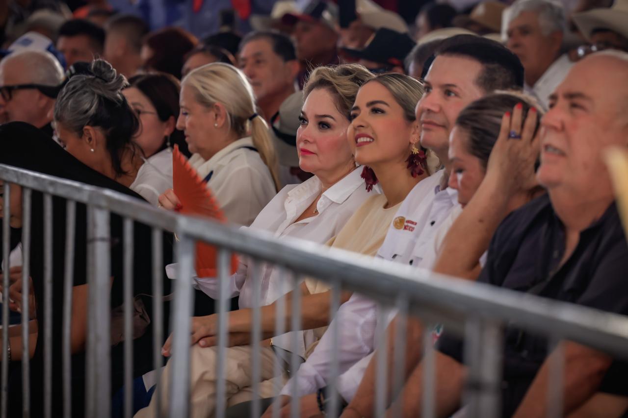 “Por eso, las y los mexicanos bien nacidos, como ustedes, todas y todos, le reconocemos su permanente e inquebrantable defensa de la soberanía nacional, que es el interés supremo de la patria. Por todo esto, viva nuestra presidenta, la doctora Claudia Sheinbaum, bienvenida querida presidenta a Sinaloa a rendir su informe”, concluyó.