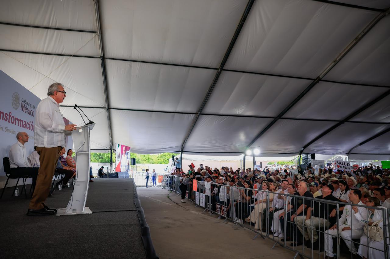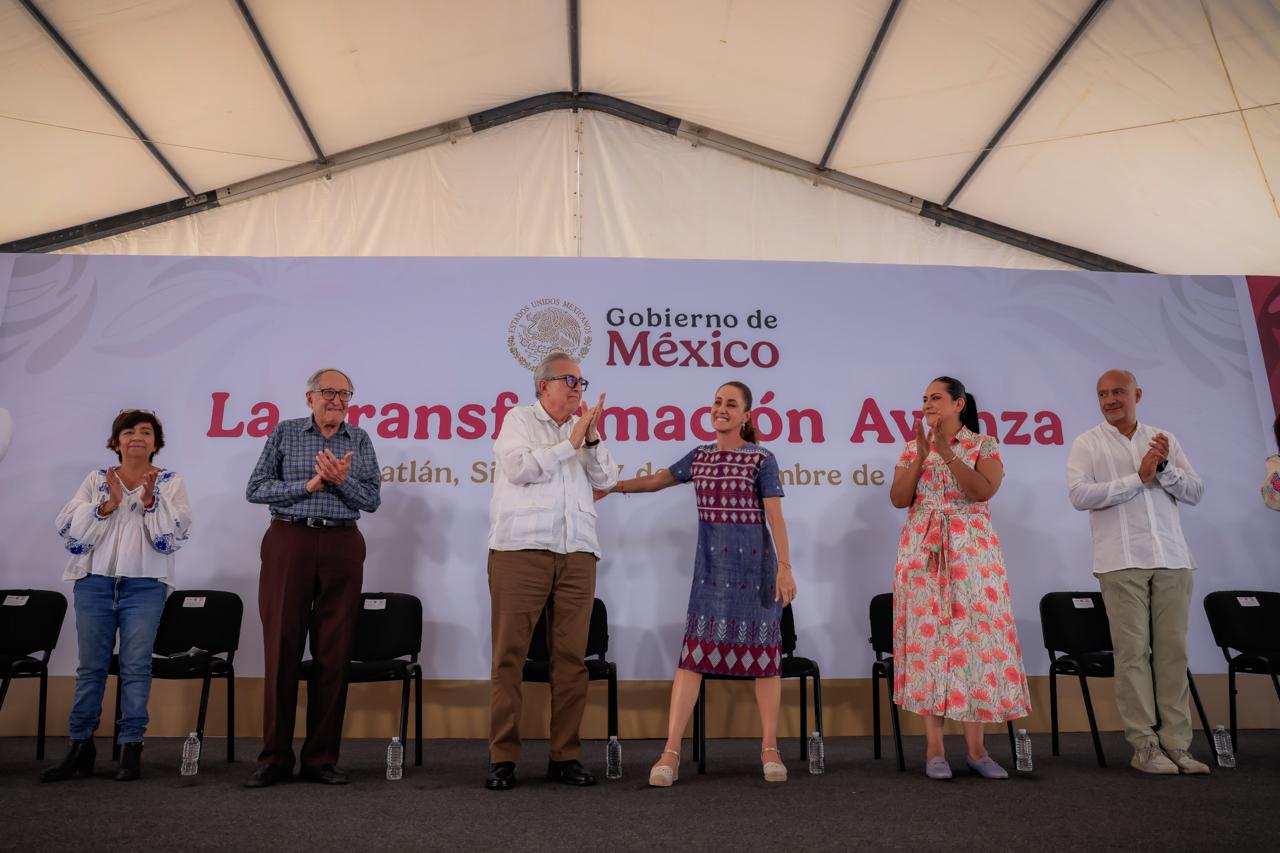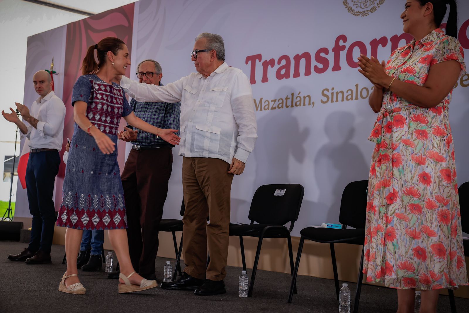 “La doctora Sheinbaum, con su admirable ejemplo, inspira a la mujer mexicana y a la mujer sinaloense en su lucha por su liberación, pero también porque recupera para los mexicanos los trenes de pasajeros, porque además apoya a los productores del campo, a los pescadores, que aquí hay muchos, a los ganaderos, doctora, Mazatlán no sólo es agua salada, es también leche, es la principal cuenca lechera de Sinaloa”, dijo.