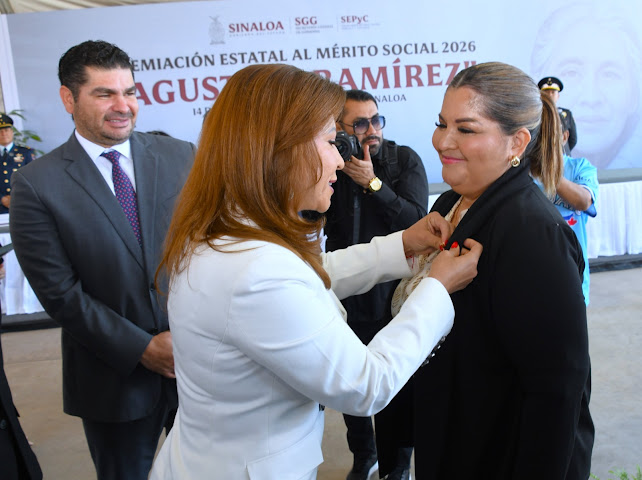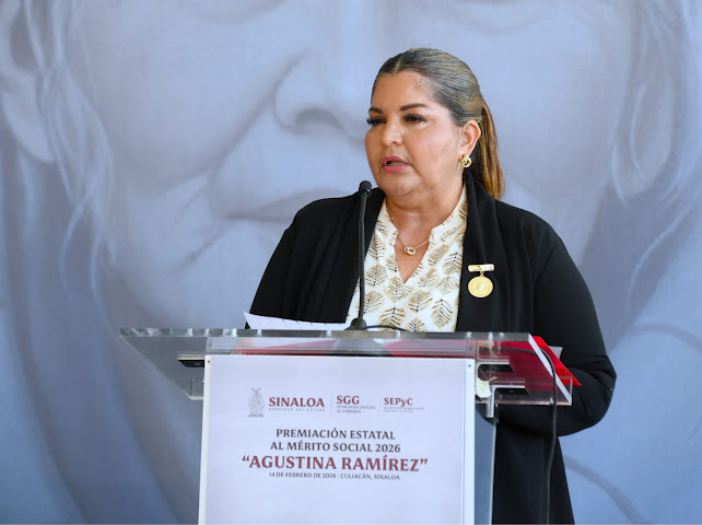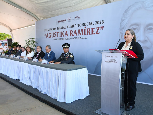 *Culiacán, Sinaloa, a 14 de febrero de 2026.—* Con la representación del Gobernador, Dr. Rubén Rocha Moya, la Secretaria de Educación Pública y Cultura, Lic. Gloria Himelda Félix Niebla, entregó el Premio Estatal al Mérito Social «Agustina Ramírez» 2026 a la Profesora Rural Ramona Calderón Hernández, en reconocimiento a su extraordinaria labor docente en las comunidades más aisladas de Sinaloa.