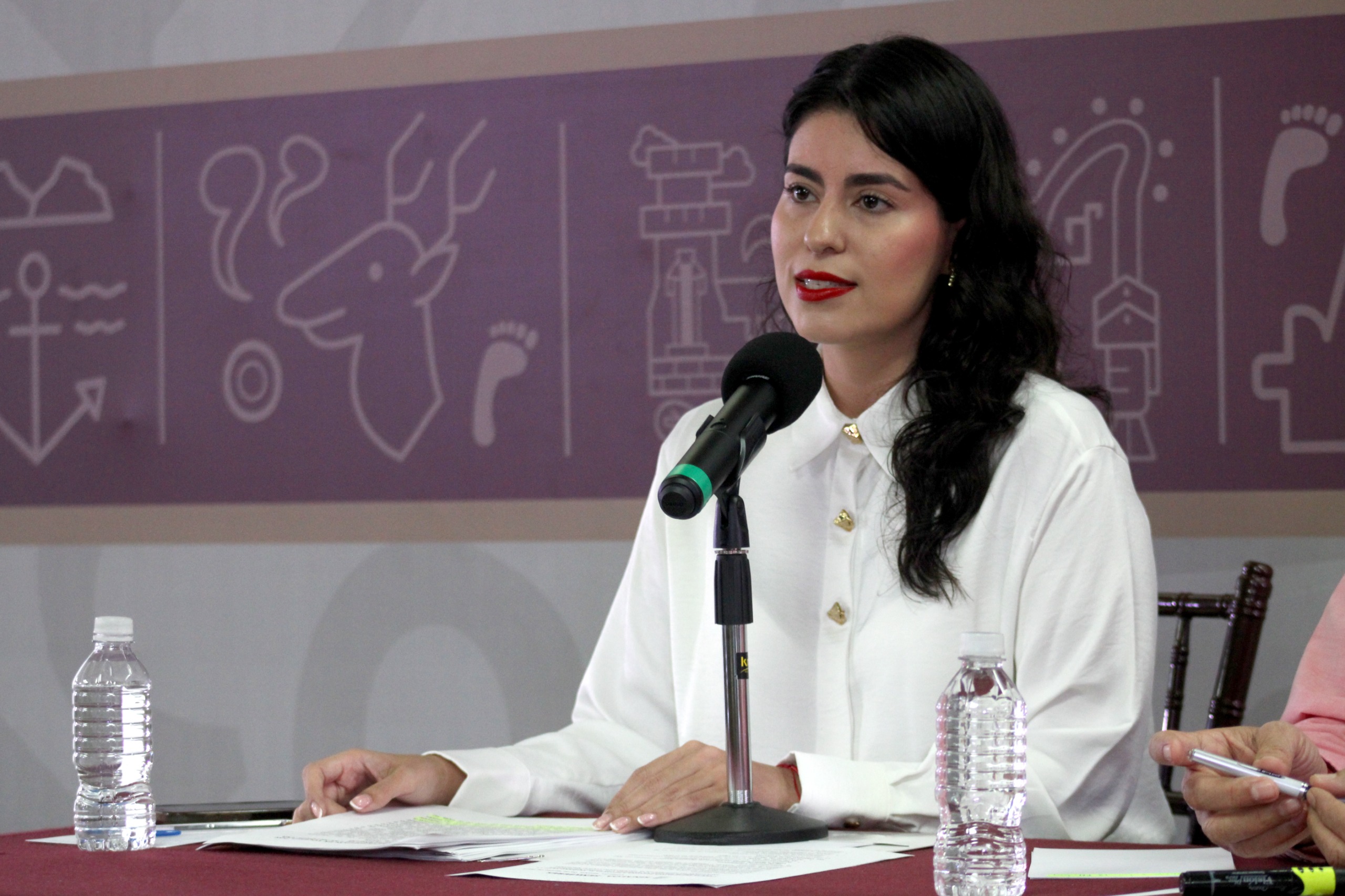 En conferencia de prensa de la Vocería del Gobierno del Estado, la Secretaria de las Mujeres, Lcda. Ana Francis Chiquete Elizalde, dio a conocer sobre los avances en