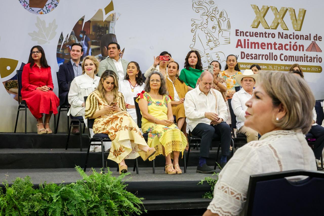 Mérida, Yucatán, a 26 de noviembre del 2025.- En el marco del XXV Encuentro Nacional de Alimentación y Desarrollo Comunitario que organiza el Sistema Nacional DIF y el Sistema DIF Yucatán, la Dra. Eneyda Rocha Ruiz, presidenta del Sistema DIF Sinaloa, recibió de manos del gobernador de Yucatán, maestro Joaquín Díaz Mena, el premio del primer lugar en la categoría de Programa de Salud y Bienestar Comunitario y el tercer lugar con la fotografía del Programa de Atención Alimentaria a Personas en Situación de Emergencia y Desastre.