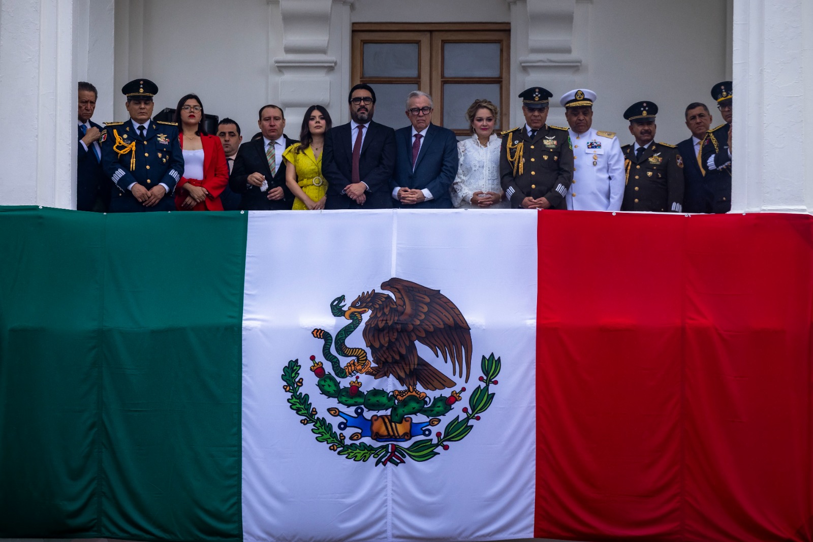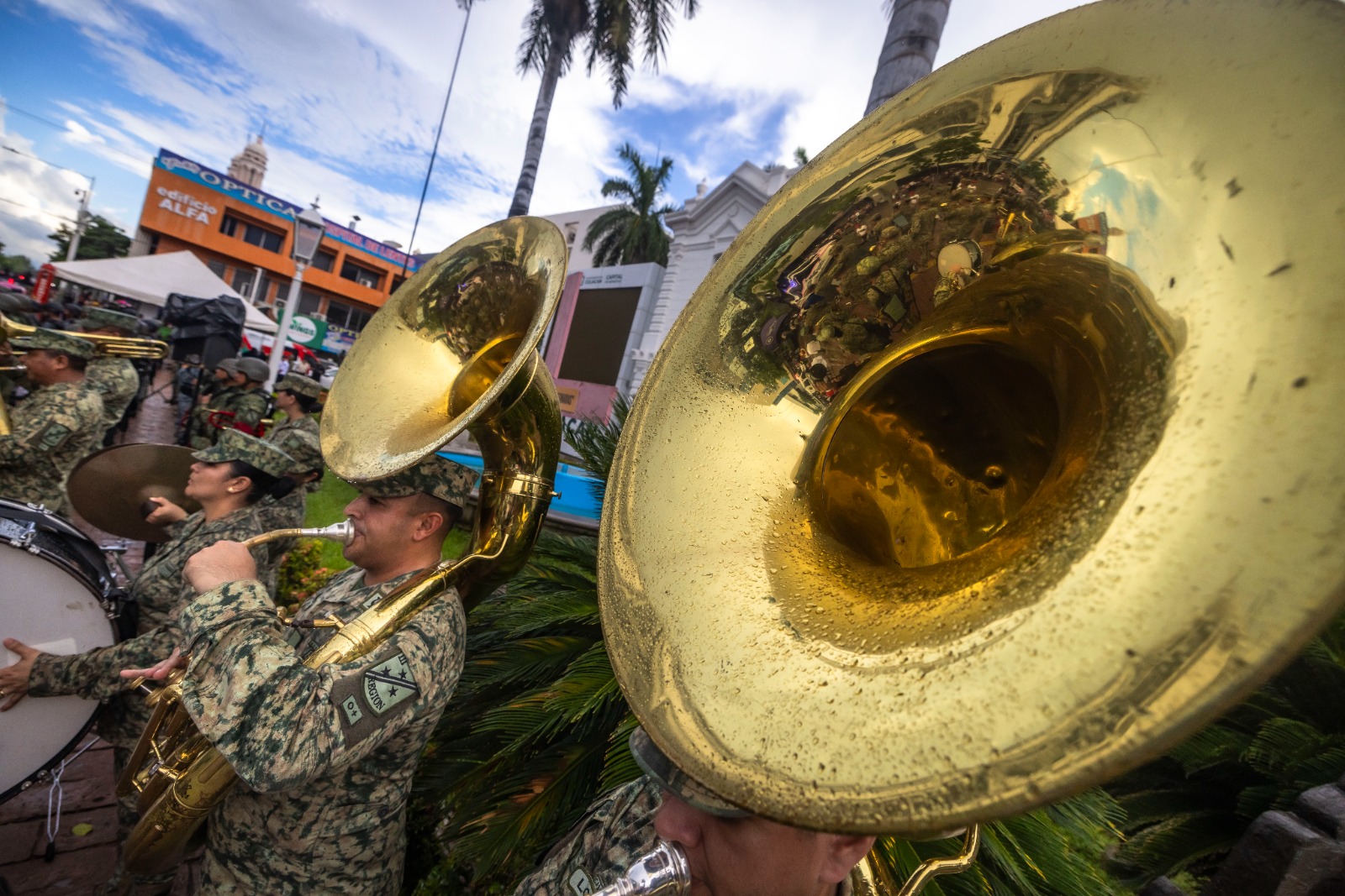 Culiacán, Sinaloa, 16 de septiembre de 2025.- Conmemorando el 215 aniversario del inicio de la guerra de Independencia de México, el Gobernador Rubén Rocha Moya, presenció, desde el balcón del Ayuntamiento, el tradicional desfile militar, como un homenaje al legado de nuestros héroes que nos dieron patria.