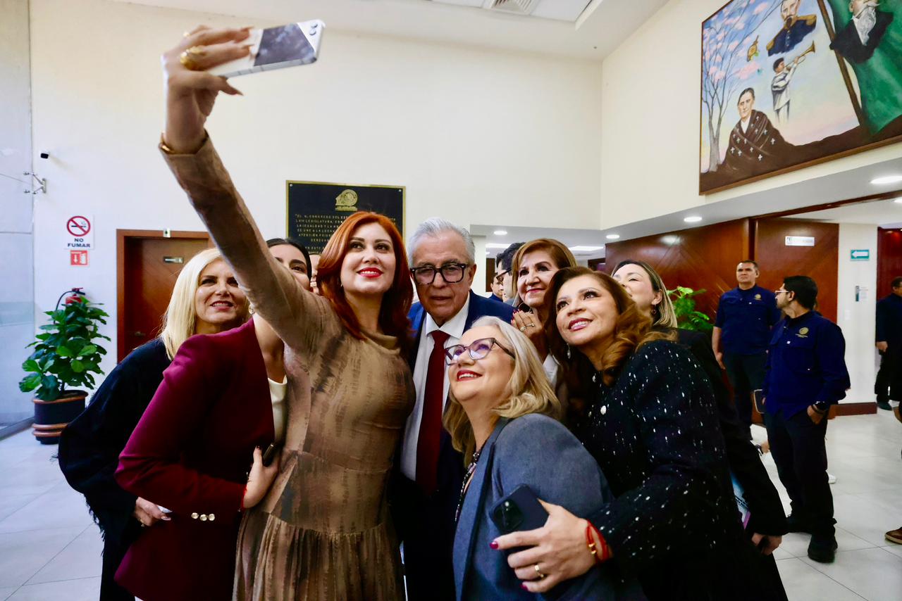 El Gobernador Rocha, estuvo acompañado de las y los secretarios que conforman su gabinete estatal, así como de la presidenta de la JUCOPO María Teresa Guerra, del presidente del Supremo Tribunal, Jesús Iván Chávez Rangel, Eneida Rocha Ruiz, presidenta del Sistema DIF y Juan de Dios Gámez, alcalde municipal.