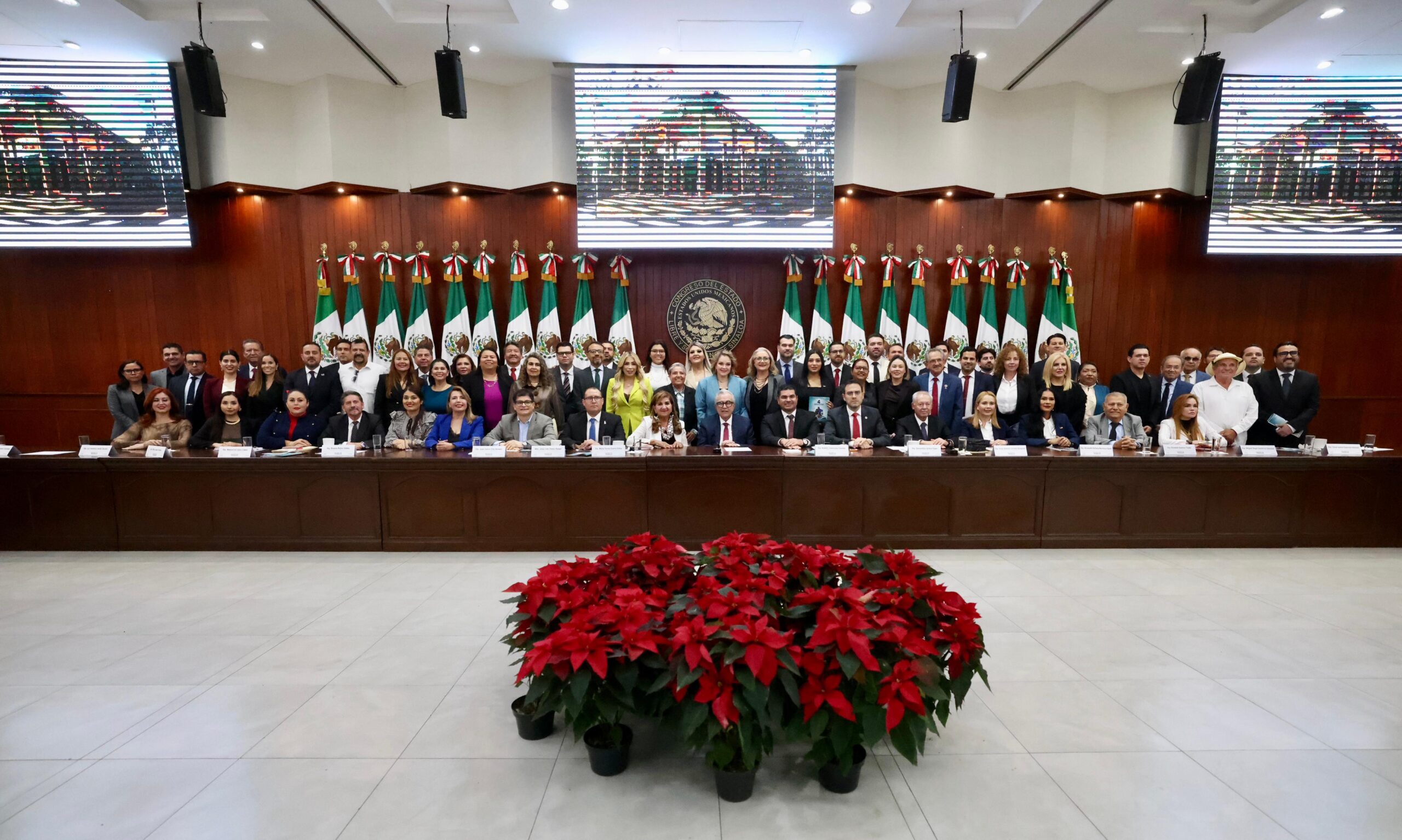 Culiacán, Sinaloa 28 de noviembre de 2025.- En el marco del ejercicio de rendición de cuentas sobre la situación que guarda la administración pública estatal contemplado en el Cuarto Informe, el Gobernador Rubén Rocha Moya, sostuvo una reunión de trabajo con diputados y diputadas que conforman las LXV legislatura, donde detalló la vocación humanista, solidaria y transformadora de su administración.