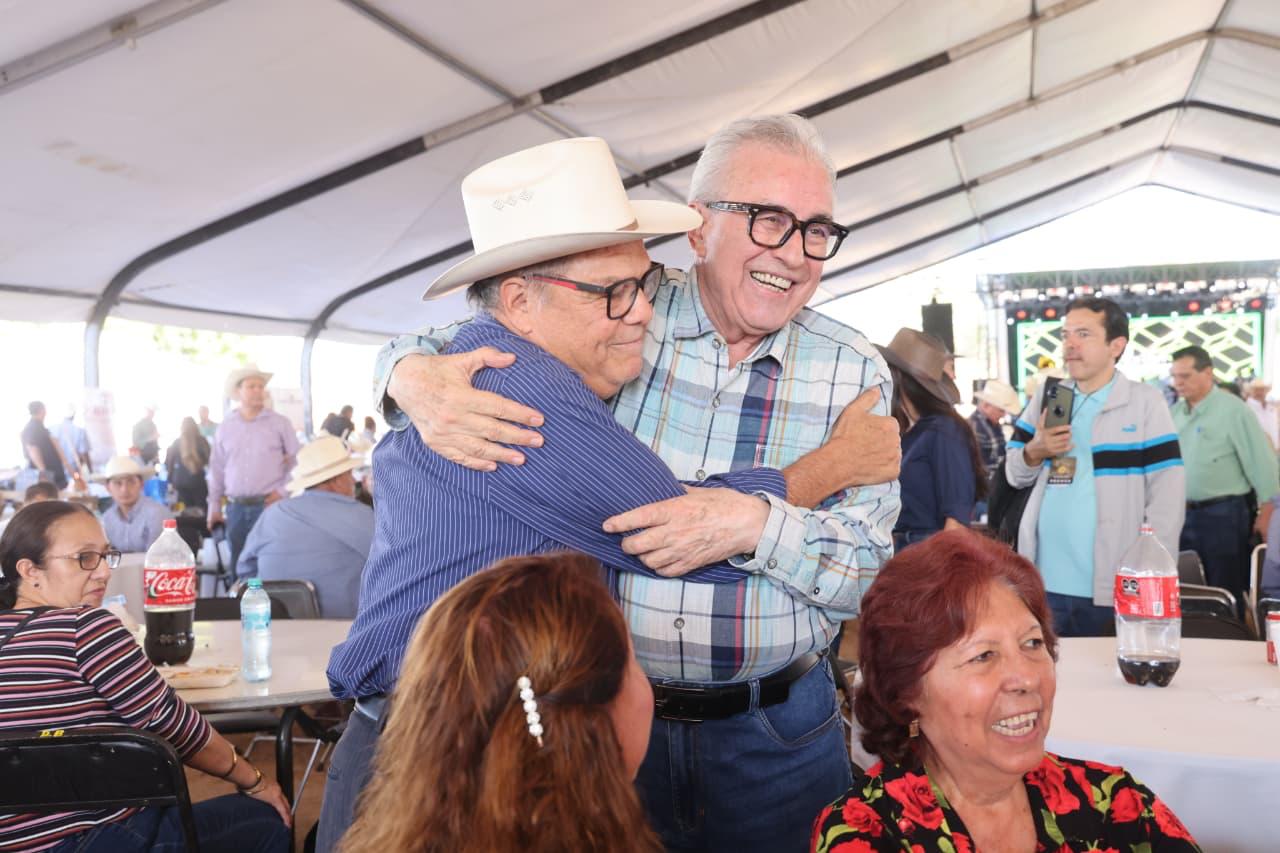 Culiacán, Sinaloa 27 de noviembre de 2025.- En el marco del día del ganadero, el gobernador Rubén Rocha Moya, compartió la celebración con las y los integrantes de este sector primario, vital para el desarrollo económico de Sinaloa, en quienes reconoció su contribución para lograr la soberanía alimentaria del estado y del país.