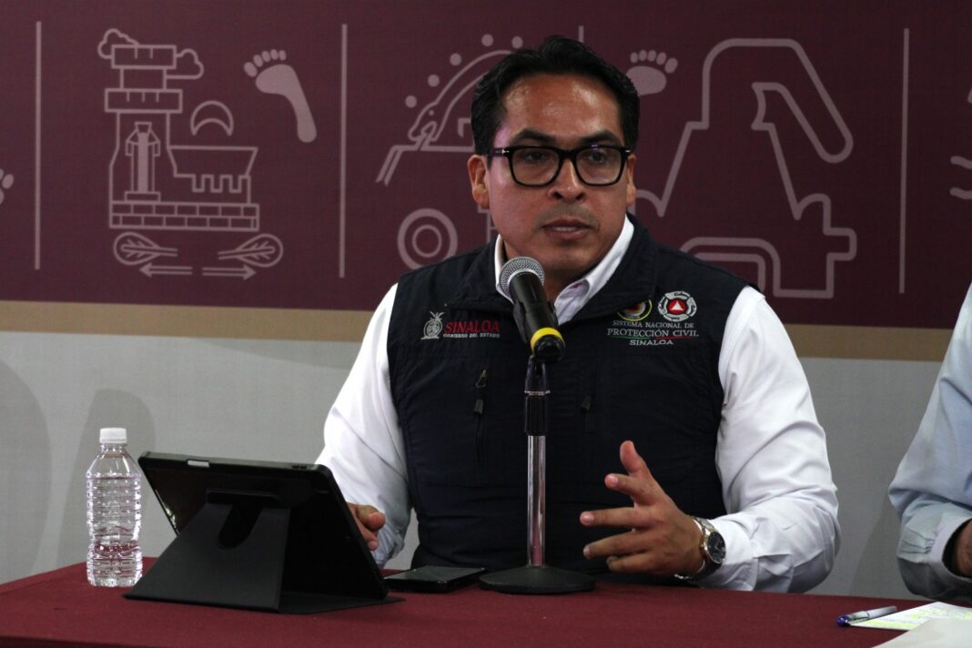 Culiacán, Sinaloa, a 6 de agosto de 2025.- Con el compromiso de mantener a la población informada y protegida ante fenómenos hidrometeorológicos, el Gobierno del Estado de Sinaloa, por instrucciones del gobernador Rubén Rocha Moya, mantiene activos los protocolos de monitoreo y prevención ante la temporada de lluvias y ciclones. Así lo dio a conocer el director del Instituto Estatal de Protección Civil, Dr. Roy Navarrete Cuevas, durante la conferencia de prensa encabezada por el Secretario General de Gobierno, Mtro. Feliciano Castro Meléndrez.