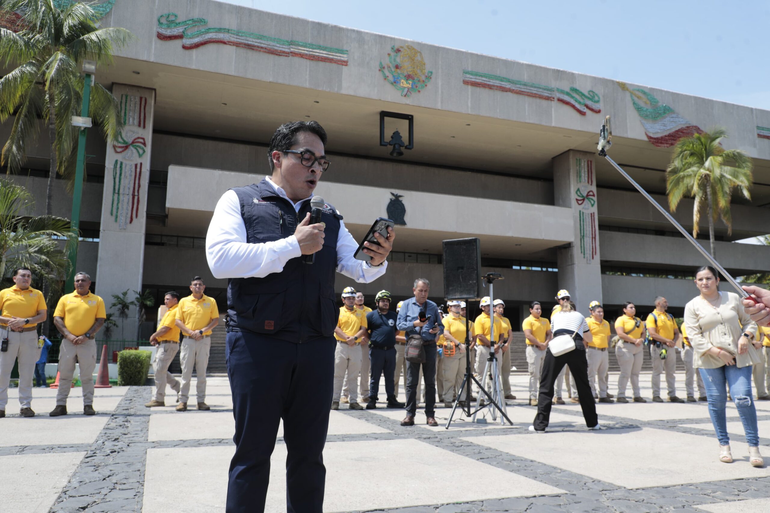 Por su parte, expresando su reconocimiento al personal y seguimiento a los protocolos establecidos, el director del Instituto Estatal de Protección Civil, Roy Navarrete Cuevas, señaló que, en un tiempo de 6 minutos y 35 segundos, un minuto menos que el tiempo realizado durante el simulacro del 2024, cientos de empleados públicos evacuaron oportunamente Palacio de Gobierno, mientras elementos de Protección Civil recorrieron cada una de las oficinas para asegurarse de la correcta evacuación.