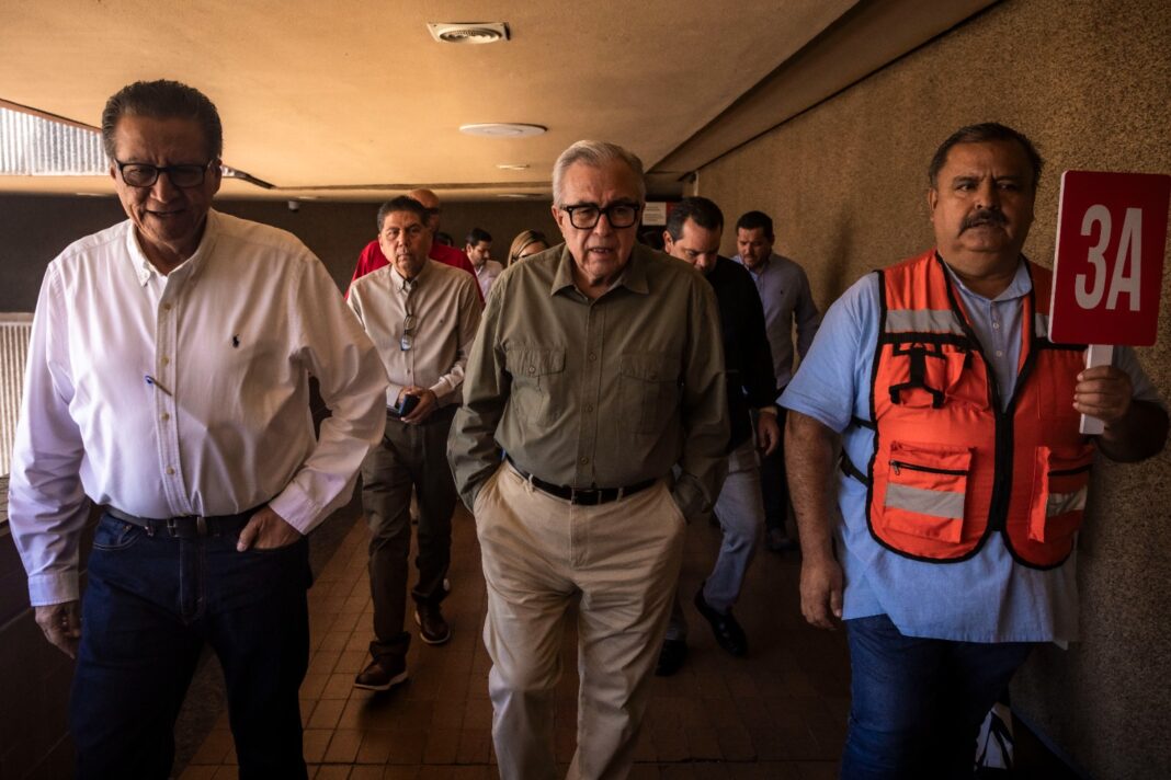Acompañaron al gobernador, el secretario General de Gobierno, Feliciano Castro Meléndrez; Pablo Francisco Bedoya, jefe del despacho del Ejecutivo; Cuauhtémoc Chacón Mendoza, coordinador de Comunicación Social; así como funcionarios y funcionarias del gabinete estatal.