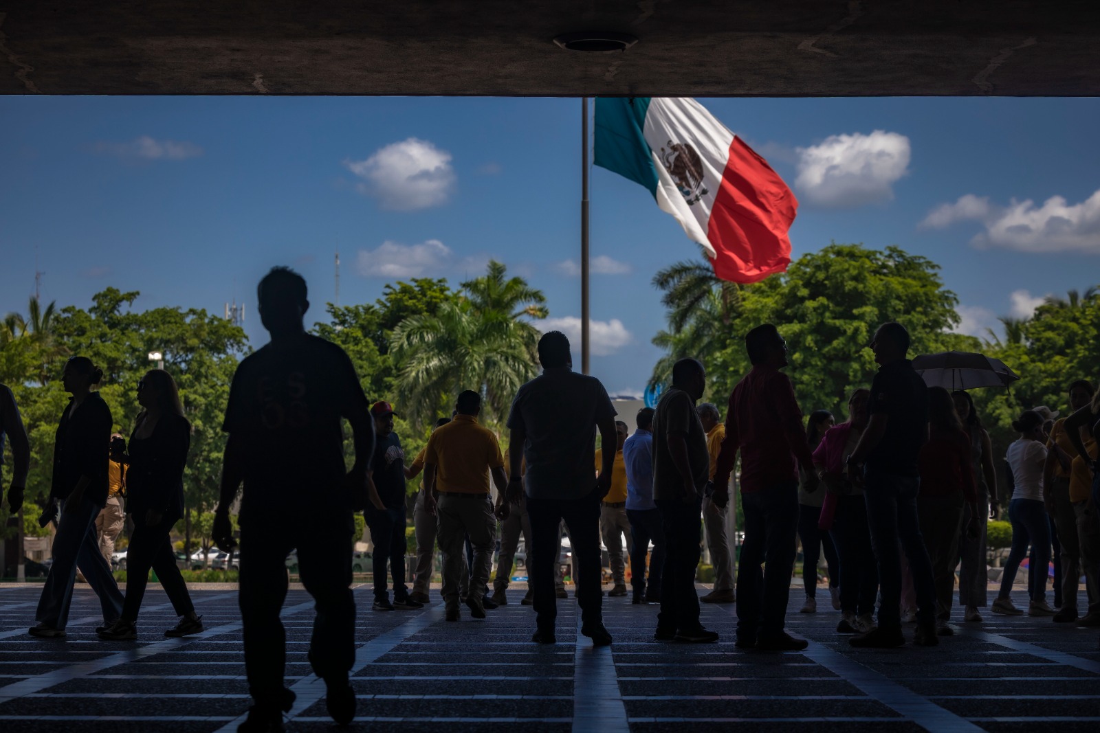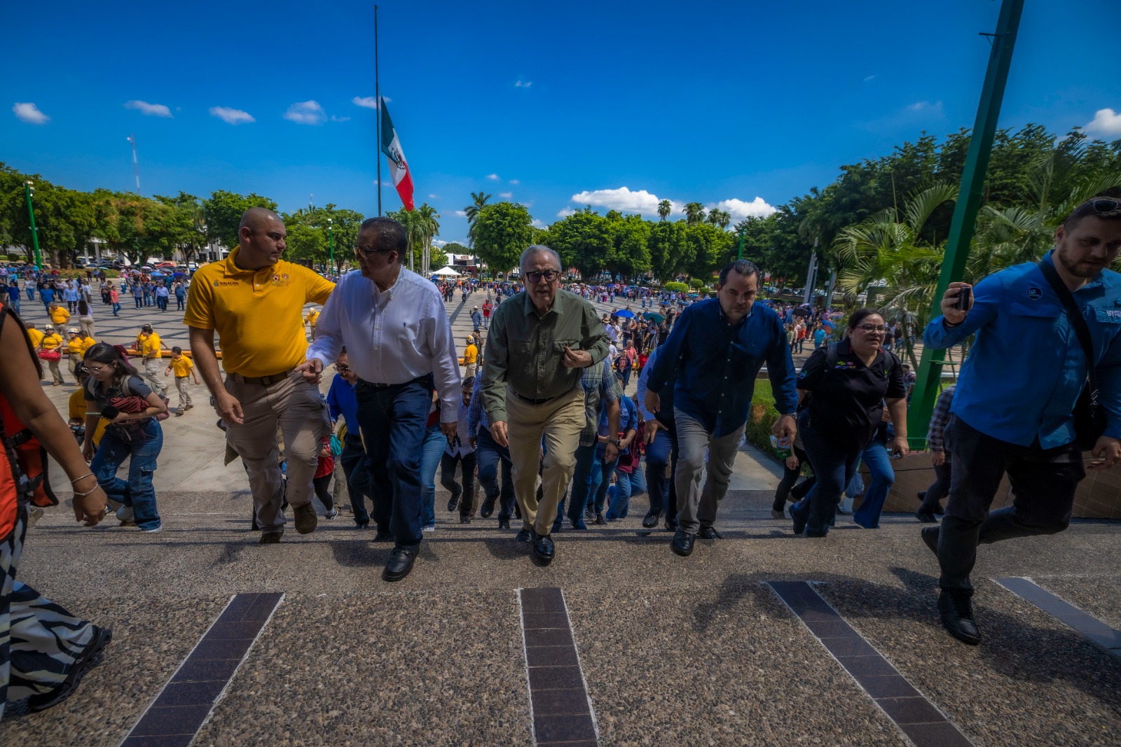 En punto de las 11:00 horas y mostrando el mensaje de alerta en su teléfono, el gobernador Rocha, salió de su despacho hacia la explanada de Gobierno, poniendo el ejemplo a las y los sinaloenses.