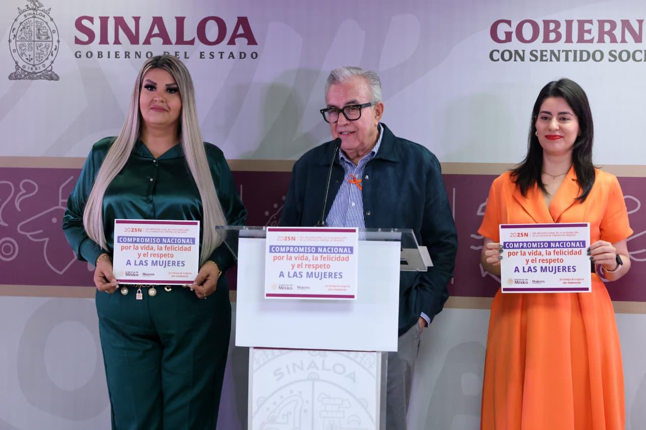 Culiacán, Sinaloa, a 25 de noviembre de 2025.- En el marco del Día para Erradicar la Violencia contra las Mujeres, el Gobernador Rubén Rocha Moya participó en un enlace nacional a la Conferencia Mañanera de la Presidenta de la República, Claudia Sheinbaum Pardo, a través del cual los 32 mandatarios estatales se adhirieron al “Compromiso Nacional por la Vida, la Felicidad y el Respeto a las Mujeres”, iniciativa del Gobierno Federal que busca combatir la violencia contra el género femenino y promover su bienestar.