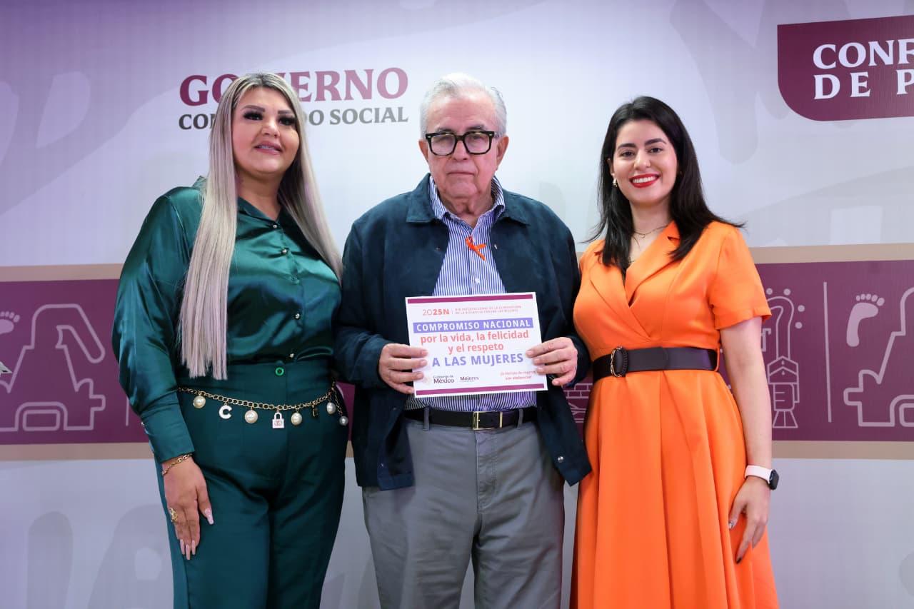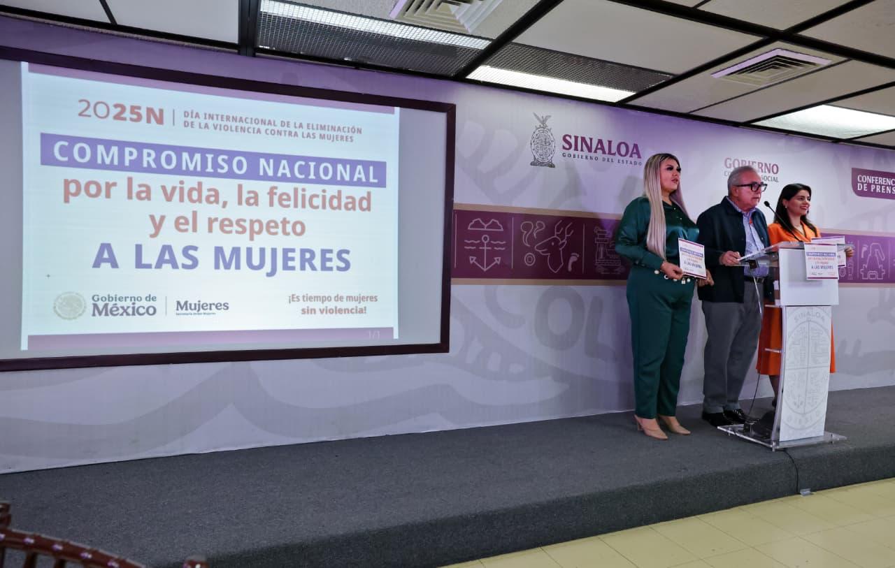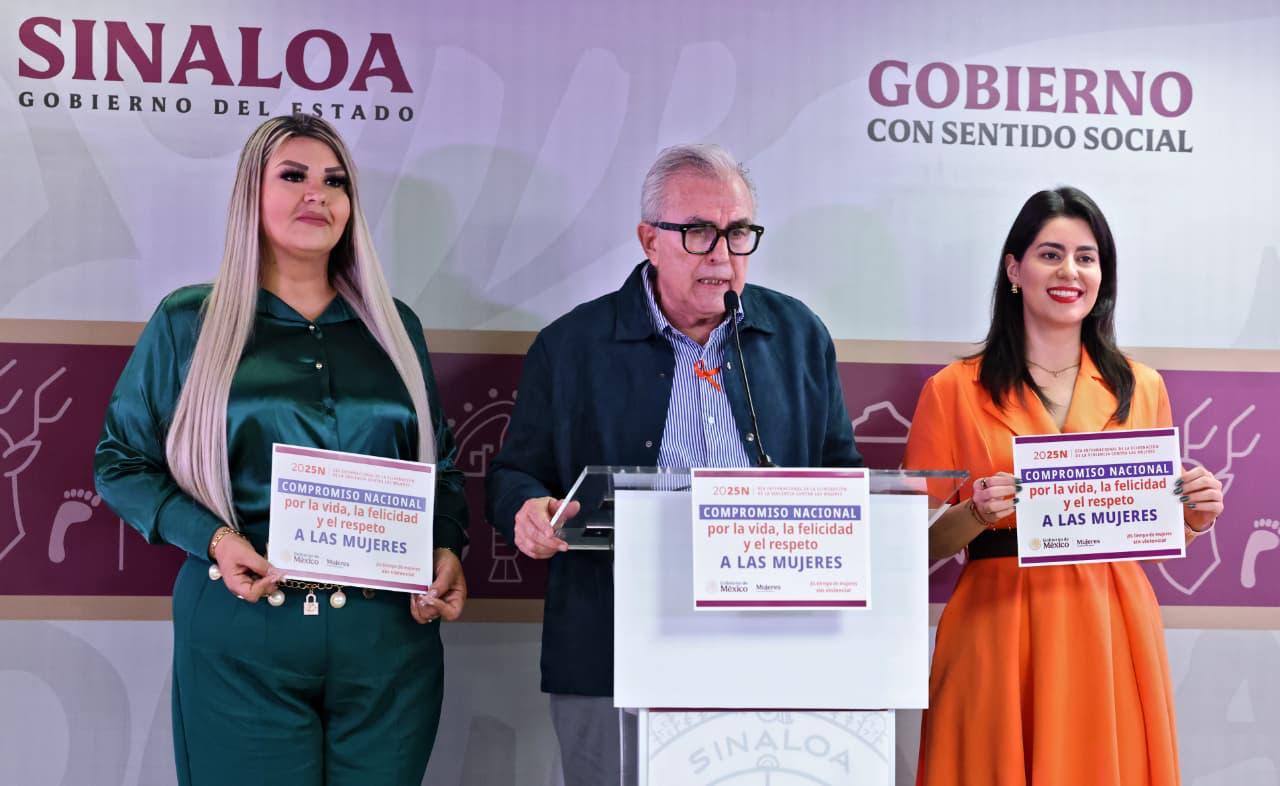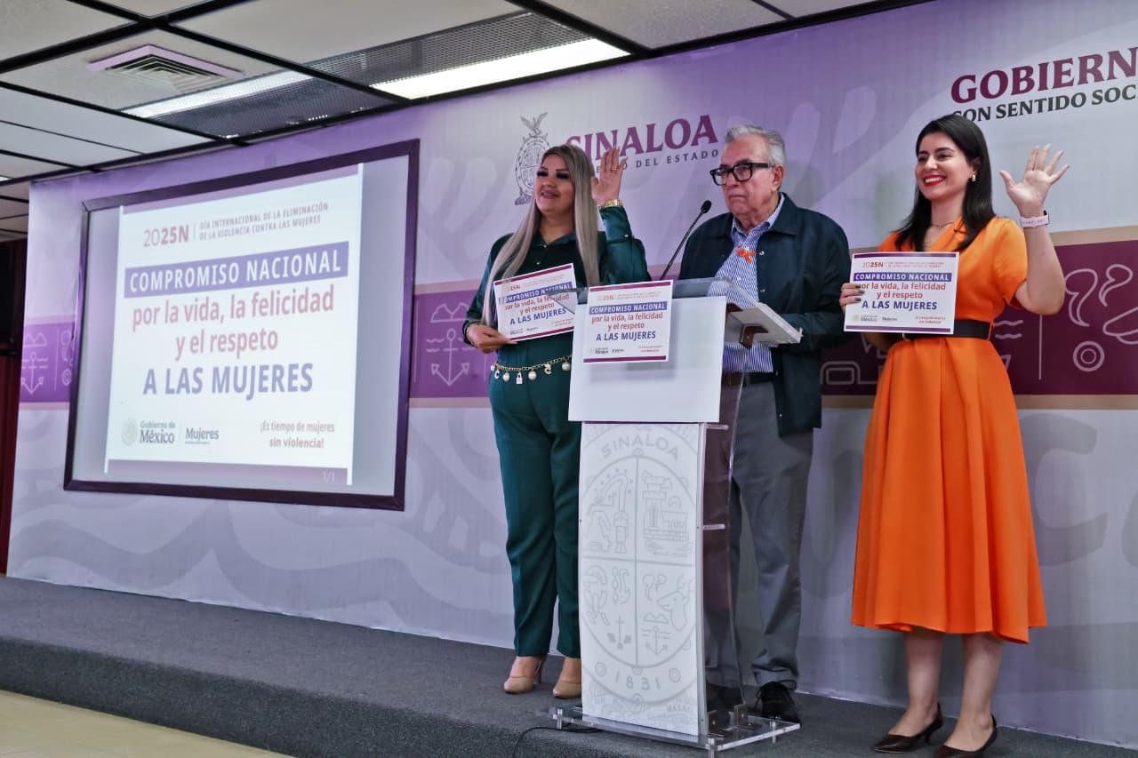 Culiacán, Sinaloa, a 25 de noviembre de 2025.- En el marco del Día para Erradicar la Violencia contra las Mujeres, el Gobernador Rubén Rocha Moya participó en un enlace nacional a la Conferencia Mañanera de la Presidenta de la República, Claudia Sheinbaum Pardo, a través del cual los 32 mandatarios estatales se adhirieron al “Compromiso Nacional por la Vida, la Felicidad y el Respeto a las Mujeres”, iniciativa del Gobierno Federal que busca combatir la violencia contra el género femenino y promover su bienestar.