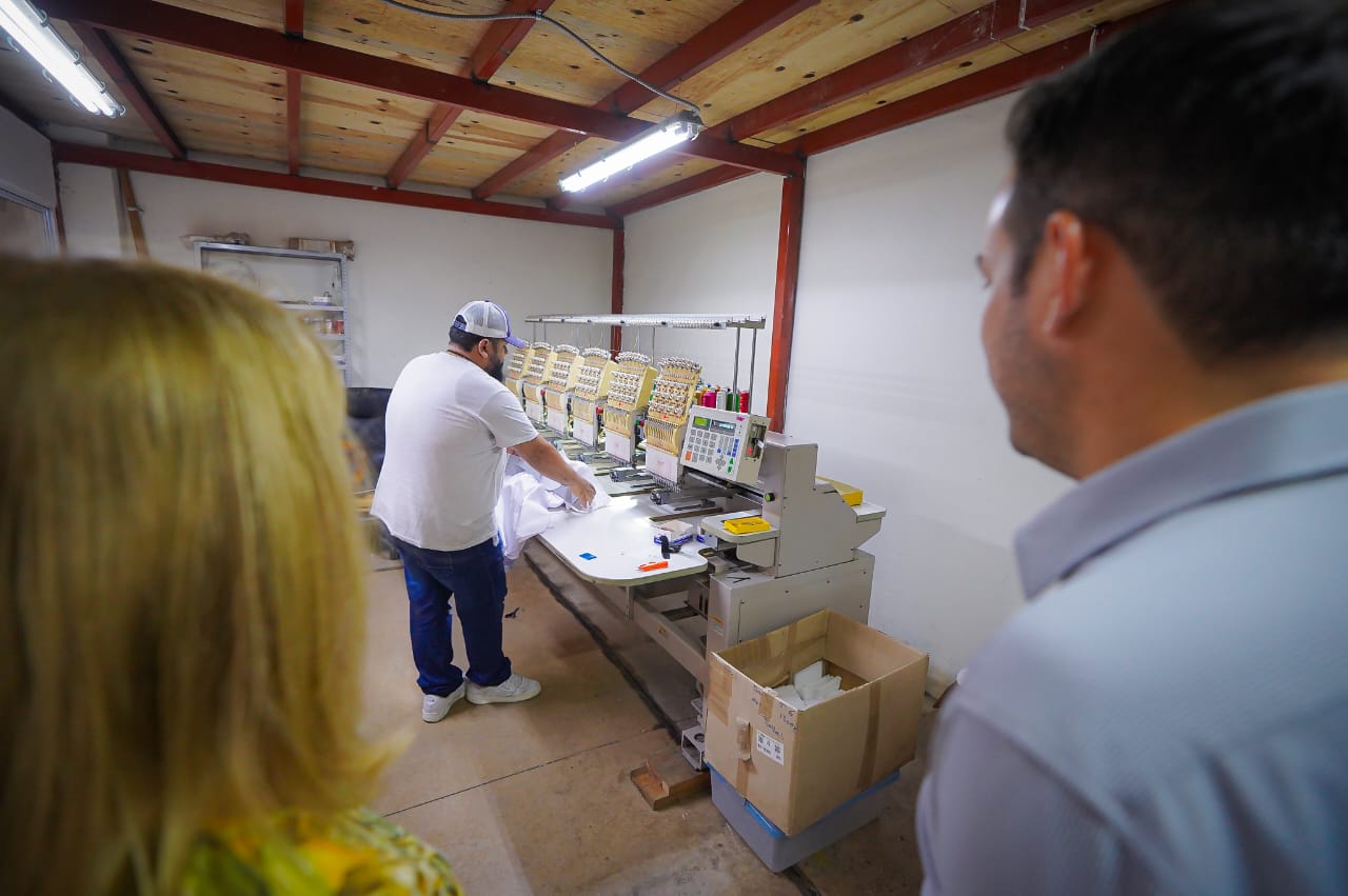 El secretario de Economía, Ricardo “Pity” Velarde Cárdenas, y la secretaria de Educación Pública y Cultura, Gloria Himelda Félix Niebla, visitaron Uniformes GAVAL, un taller de confección de uniformes escolares que también funciona como centro de canje, ubicado en la colonia Salvador Alvarado, en Culiacán.